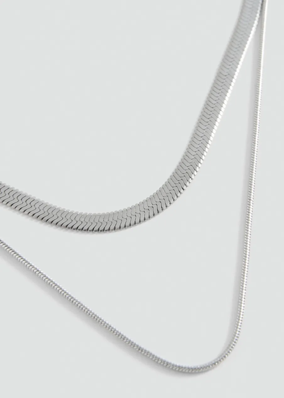 W formie łańcucha. Płaski łańcuszek. Zapięcie na haftkę.