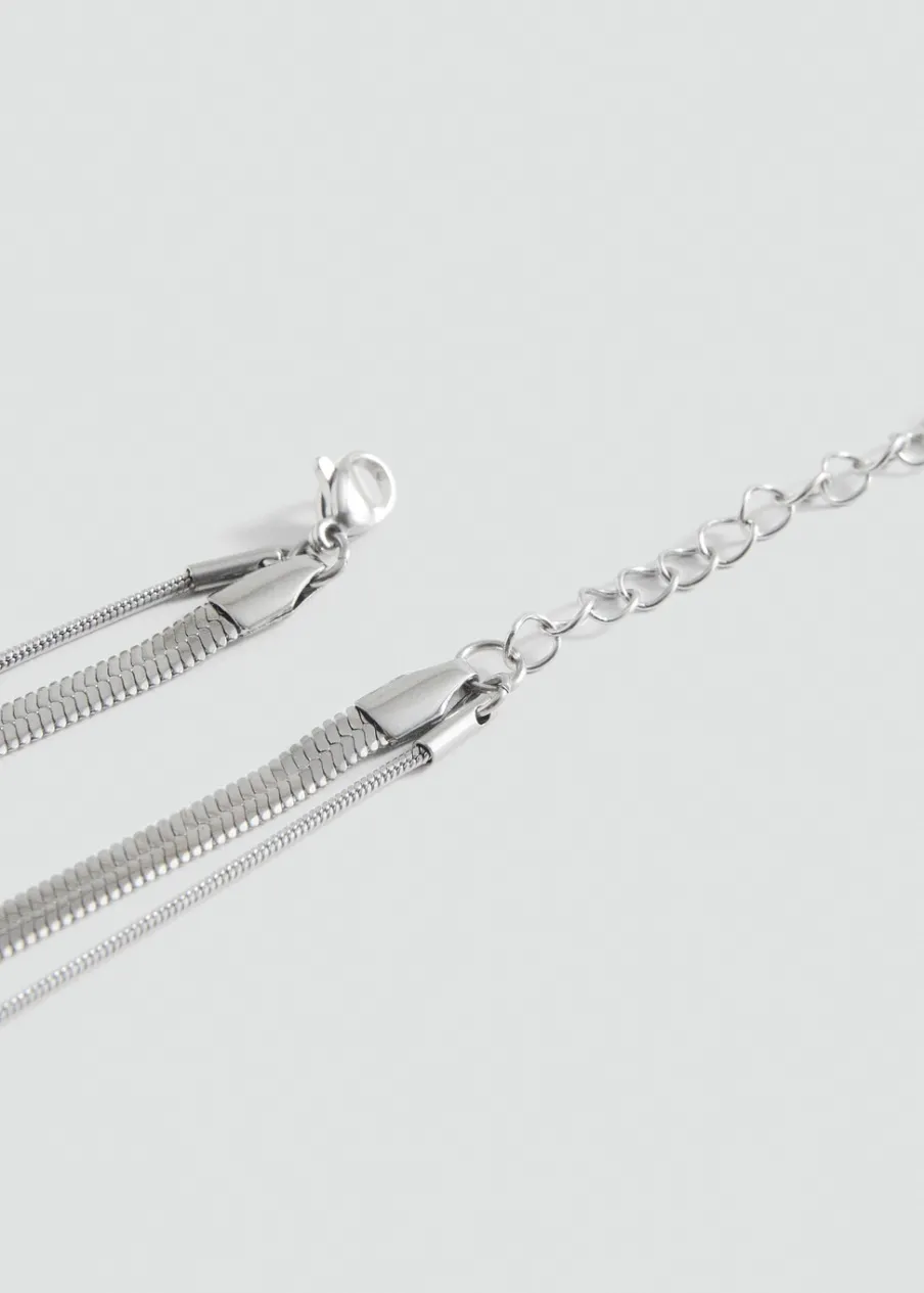 OpisW formie łańcucha. Płaski łańcuszek. Zapięcie na haftkę.