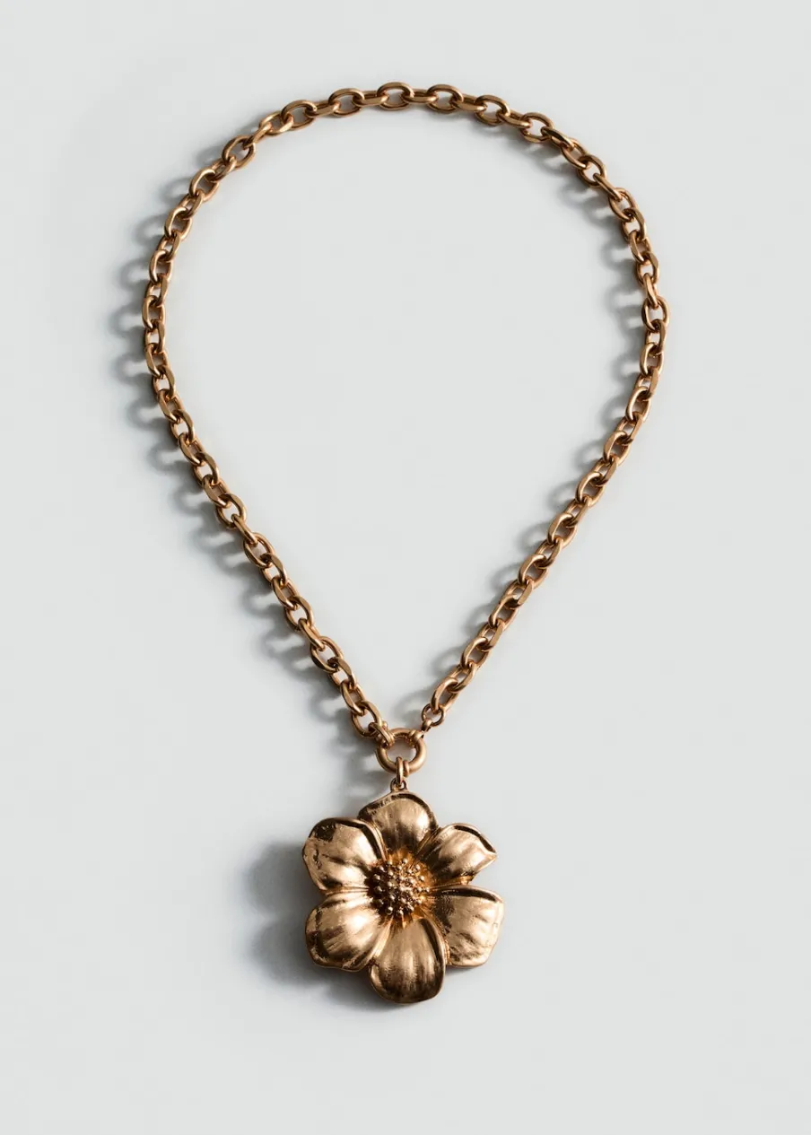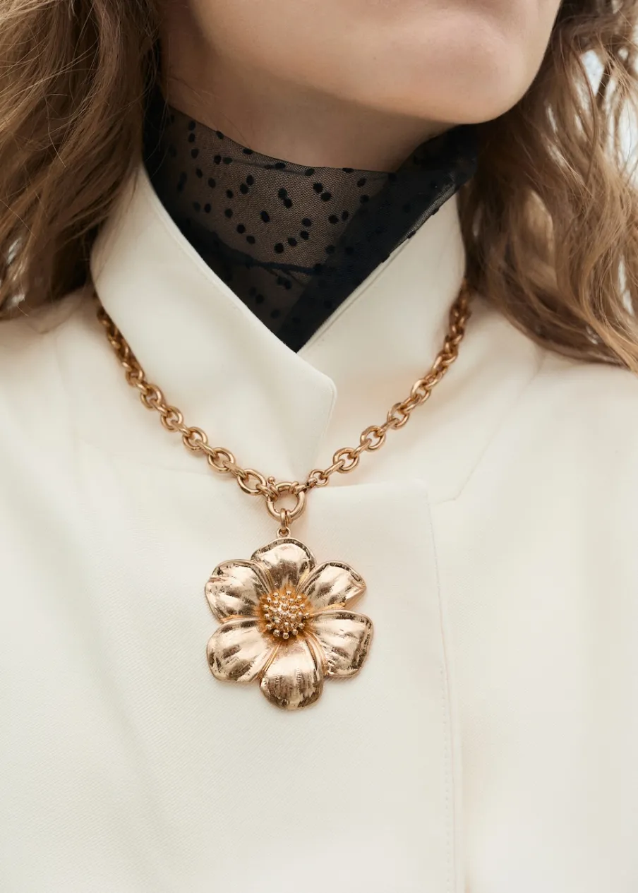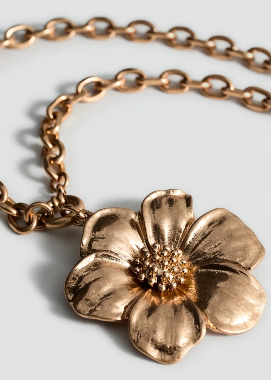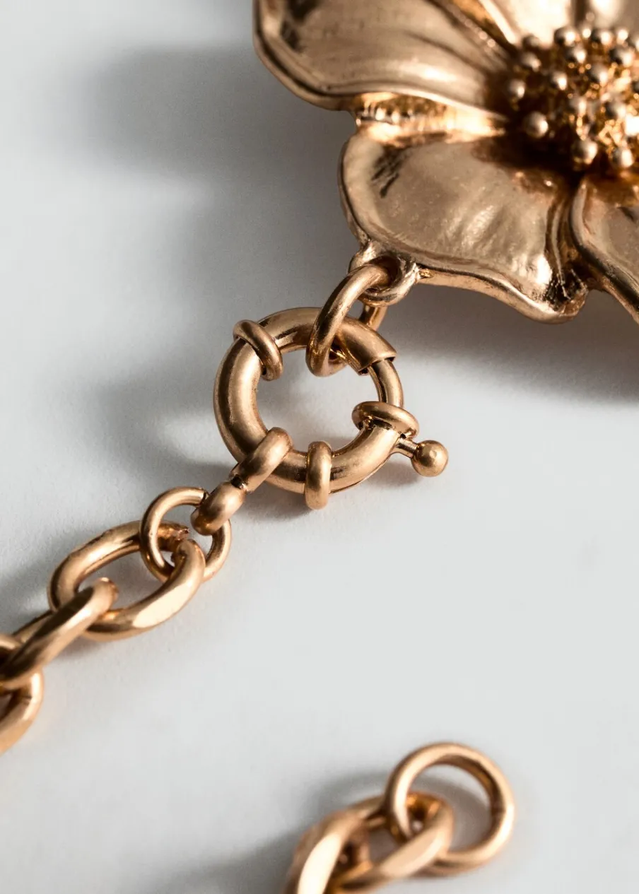 W formie łańcucha. Model długi. Zawieszka kwiat. Zapięcie na karabińczyk.
