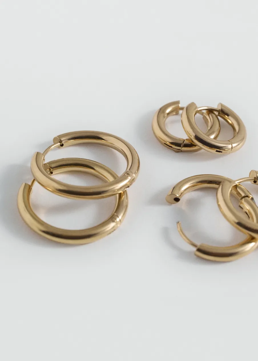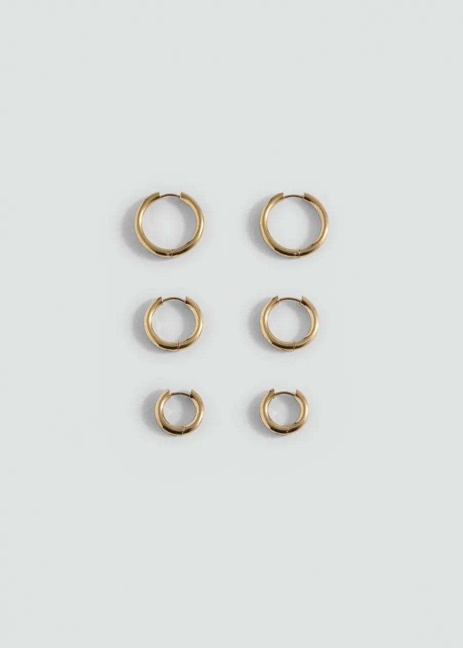OpisStal nierdzewna. Zestaw 3 sztuk. Kształt koła. Zapięcie na zacisk.