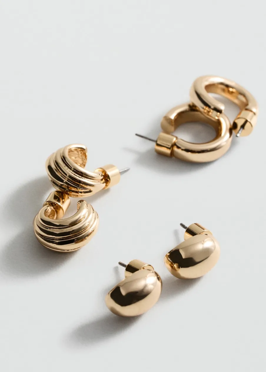 Zestaw 3 sztuk. Krótki krój. Model łączony. Mała wielkość. Metalowe zapięcie na zatrzask.