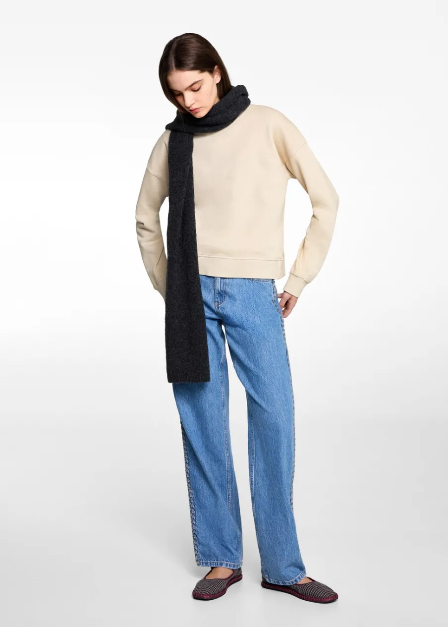Bawełna 100%. Model prosty. Okrągły dekolt. Długi rękaw. Bez zapięcia. Modelka ma 172 cm wzrostu i nosi rozmiar M. Model standardowy. Fason relaxed.