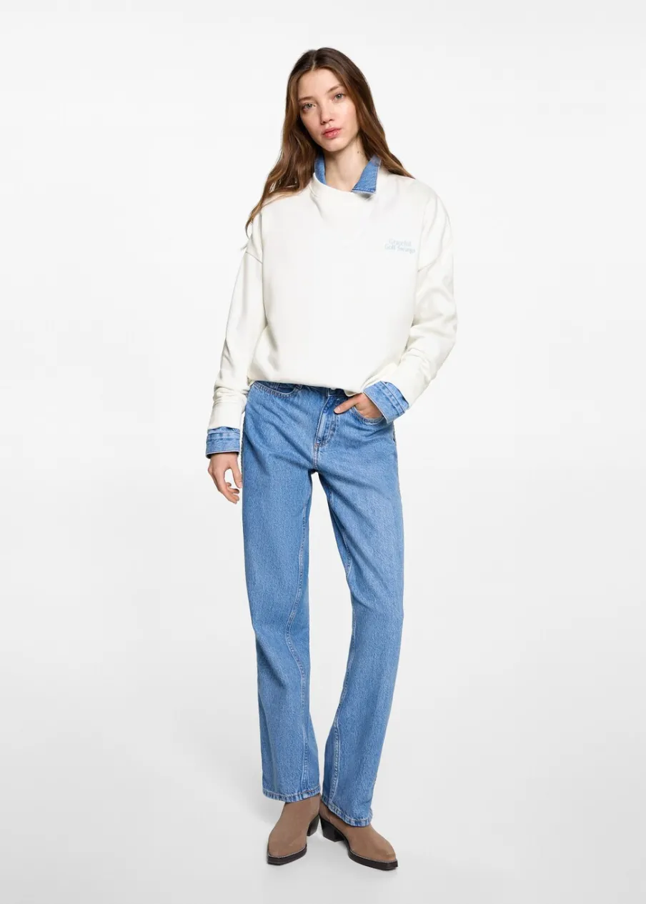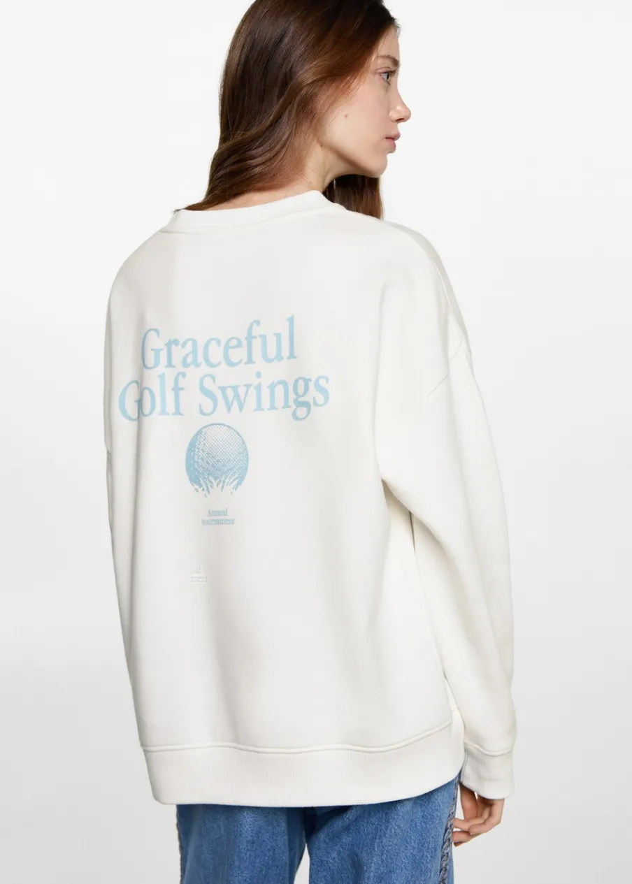 Bawełna 100%. Model prosty. Okrągły dekolt. Nadrukowany napis na klatce piersiowej. Nadruk z tyłu. Kołnierz, mankiety i dół z prążkowanej dzianiny.