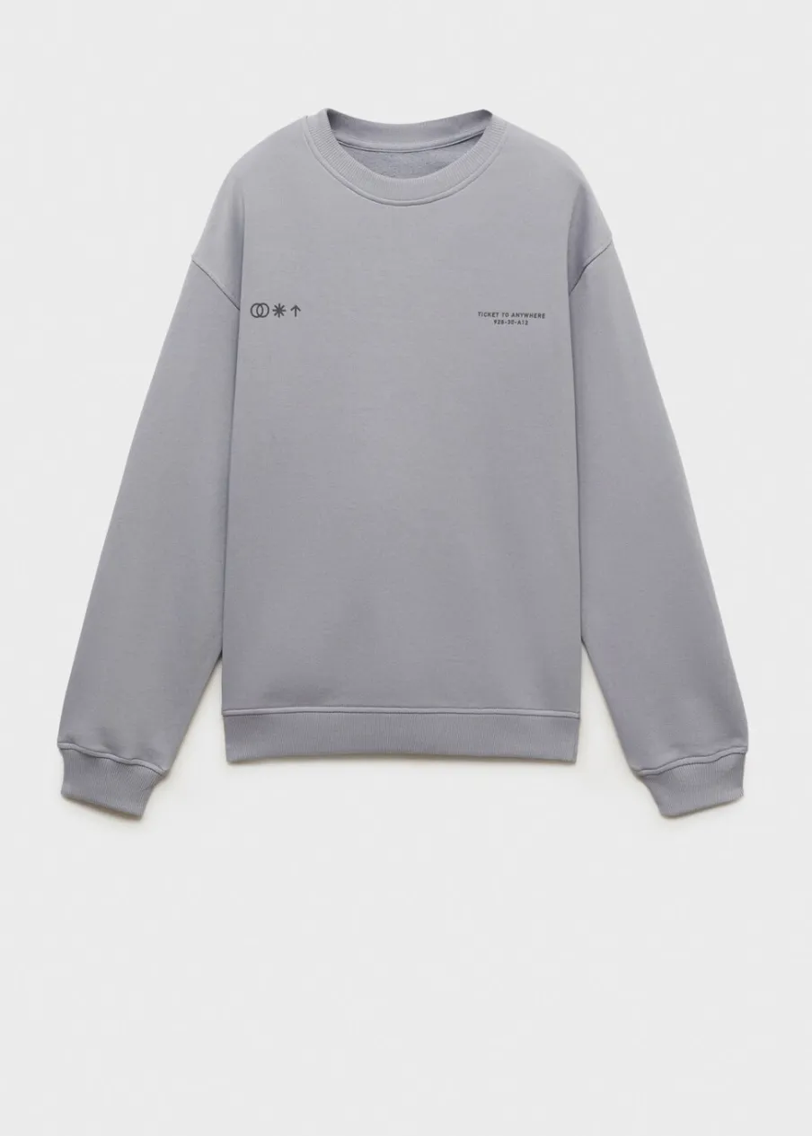 Bawełna 100%. Model prosty. Nadruk tekstu. Okrągły dekolt. Kołnierz, mankiety i dół wykończone ściągaczem.