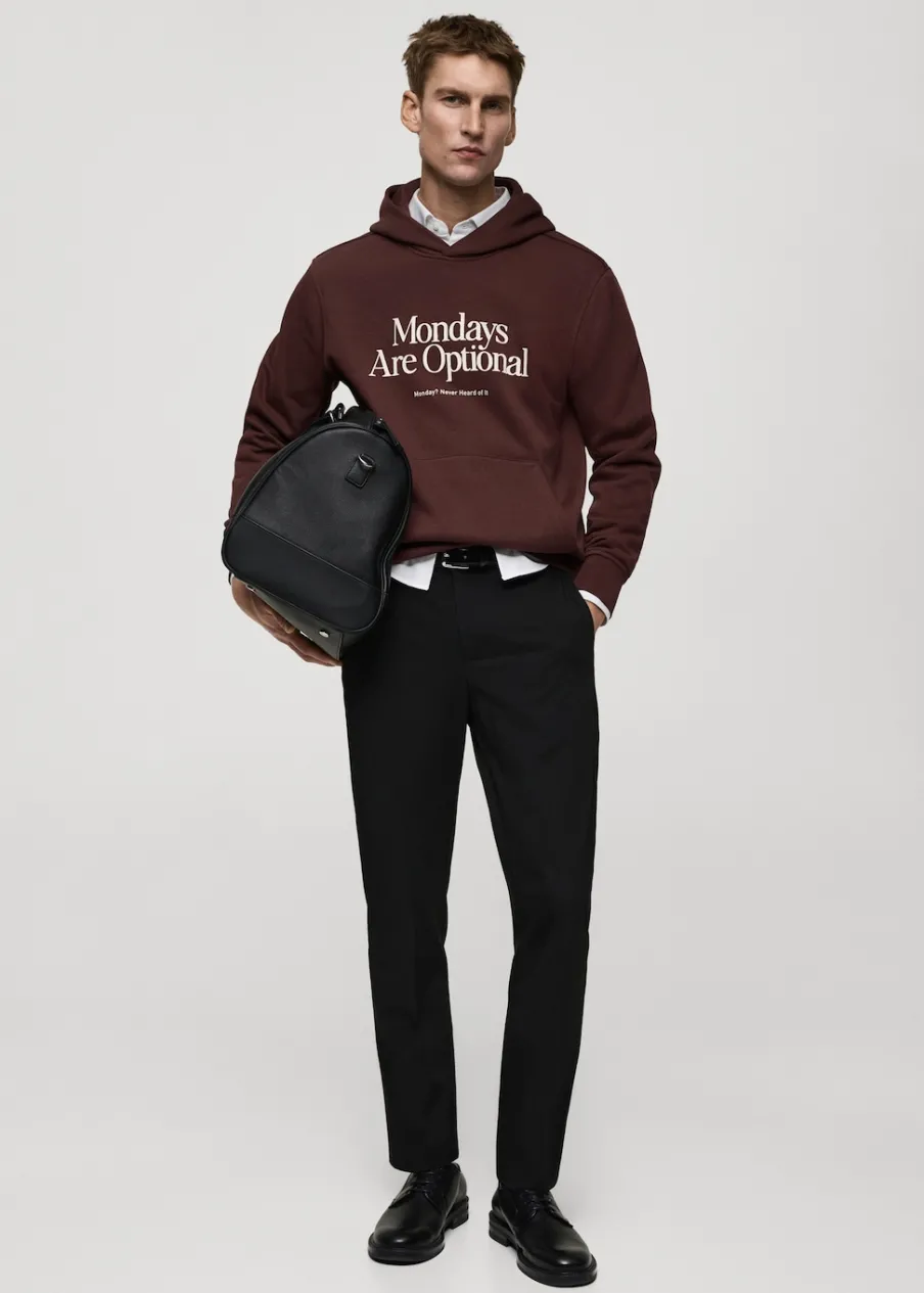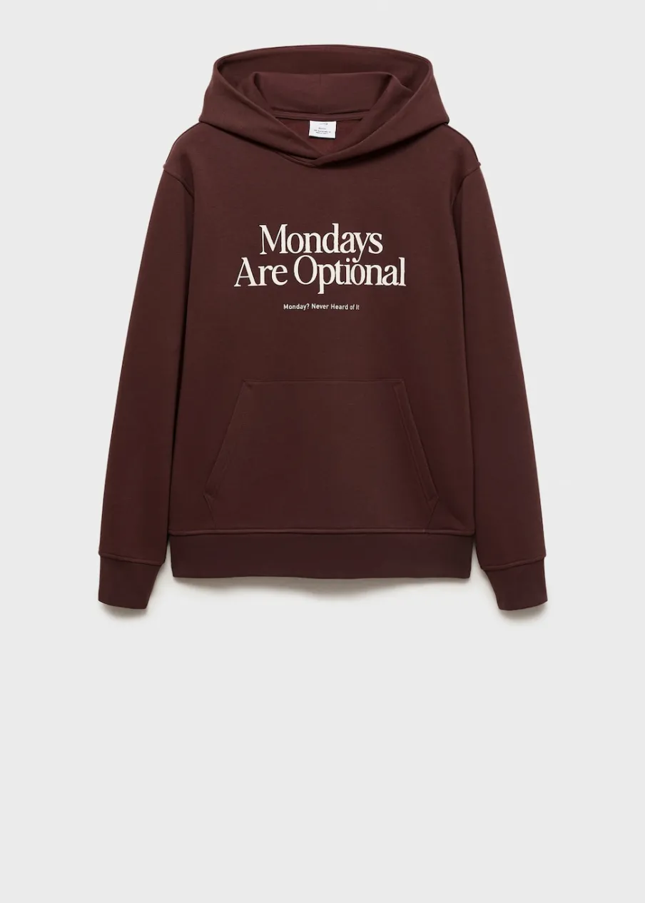 Krój regular. Kaptur. Tkanina mieszanka bawełny. Nadrukowany napis z przodu. Prążkowane wykończenia. Kieszenie kangurka. Model ma 185 cm wzrostu i nosi rozmiar M.