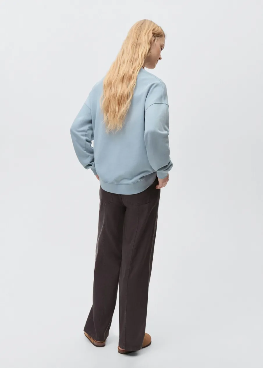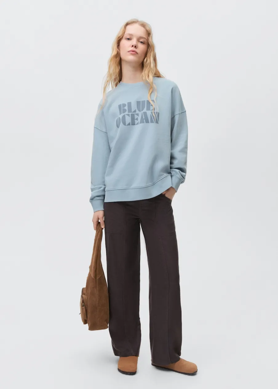 Bawełna 100%. Model prosty. Długi rękaw. Okrągły dekolt. Kołnierz, mankiety i dół z prążkowanej dzianiny. Nadrukowany napis na klatce piersiowej. Bez zapięcia.