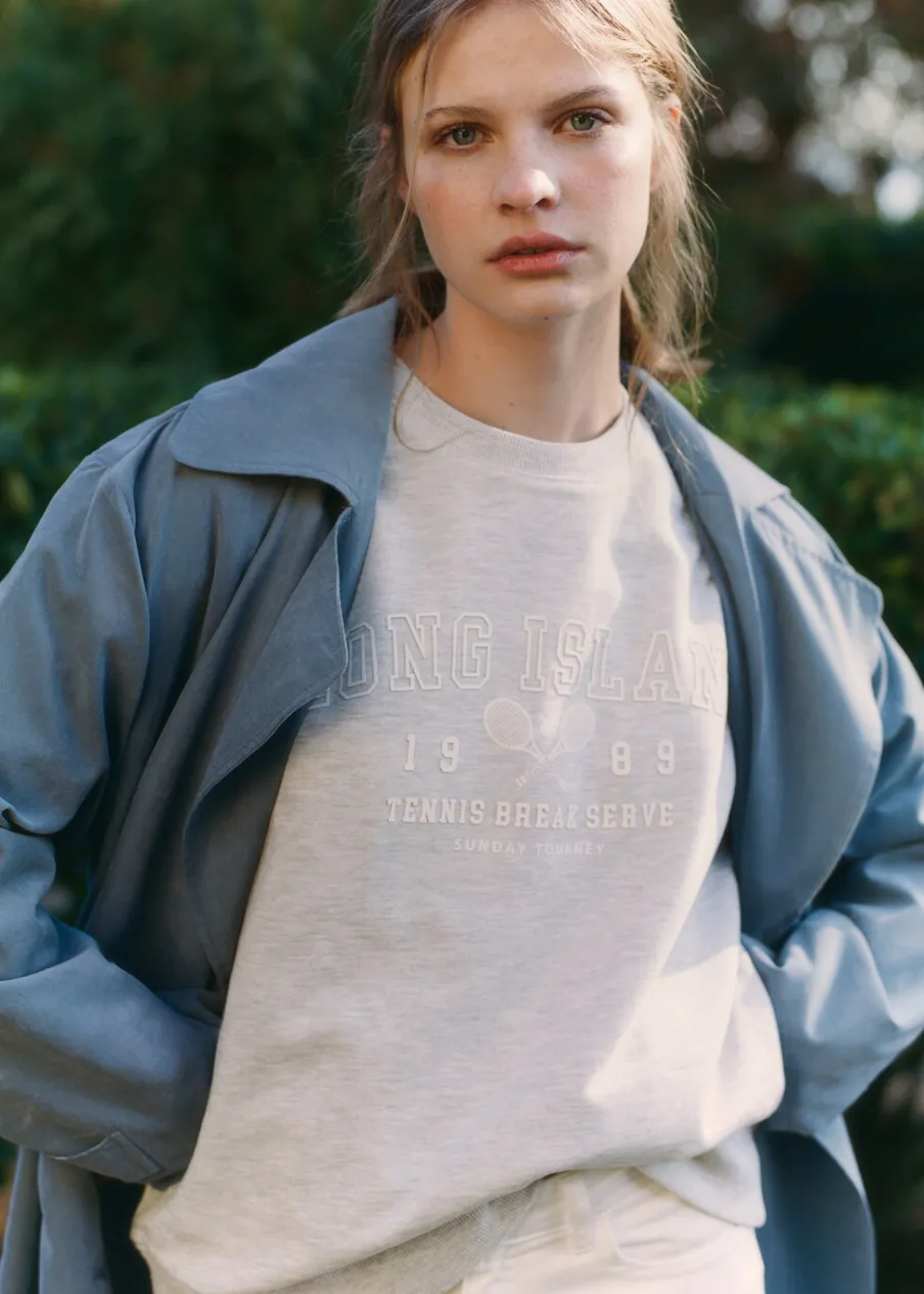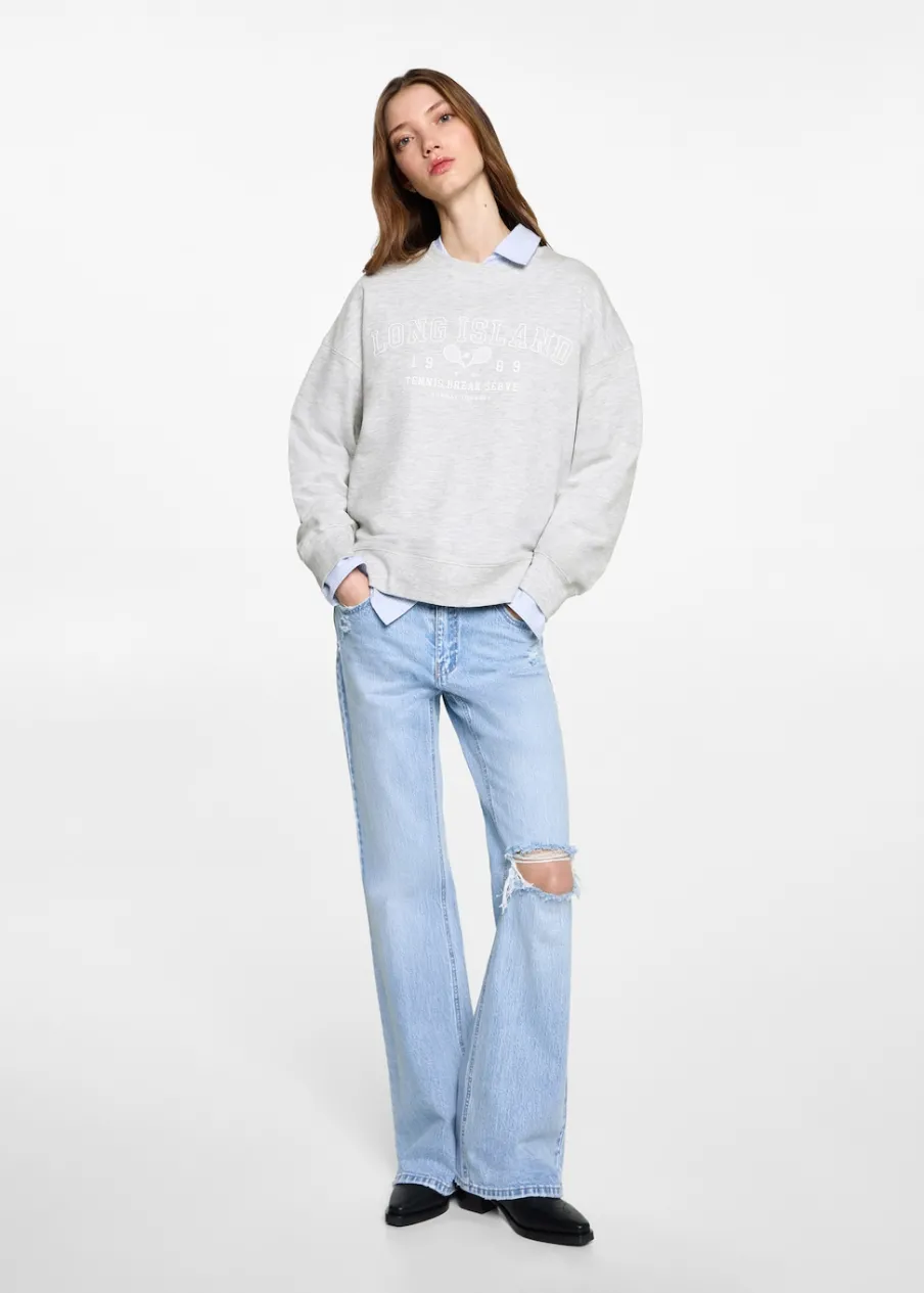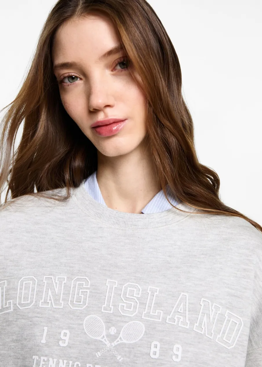 Bawełna 100%. Długi rękaw. Okrągły dekolt. Nadruk z przodu. Kołnierz, mankiety i dół z prążkowanej dzianiny.