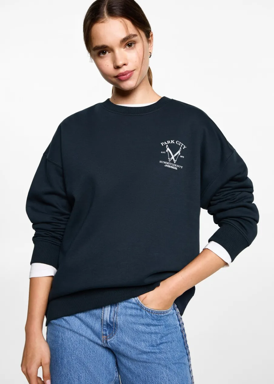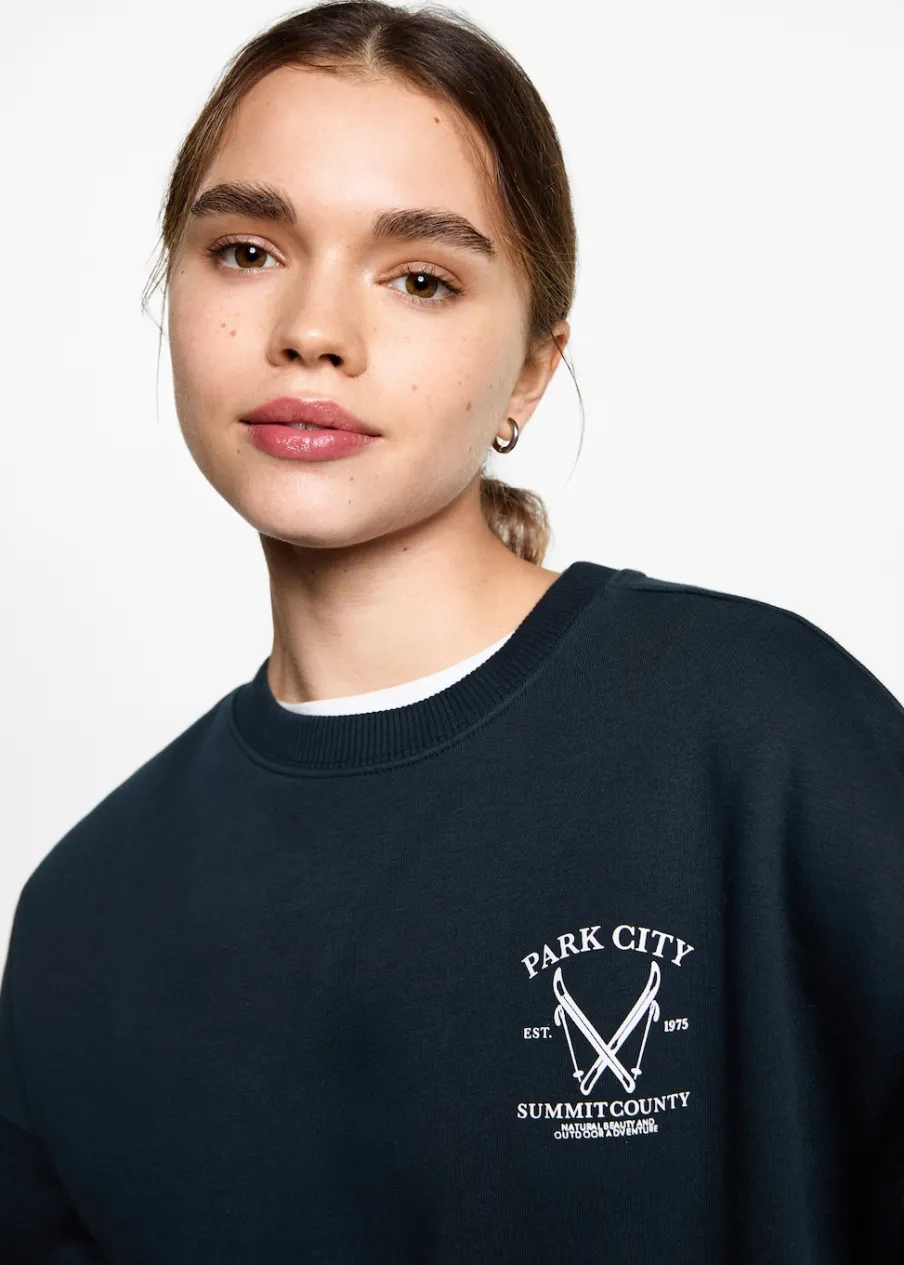 Model prosty. Nadruk na klatce piersiowej. Nadruk z tyłu. Kołnierz, mankiety i dół z prążkowanej dzianiny.
