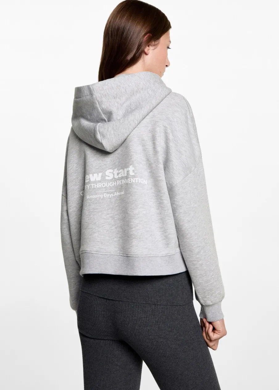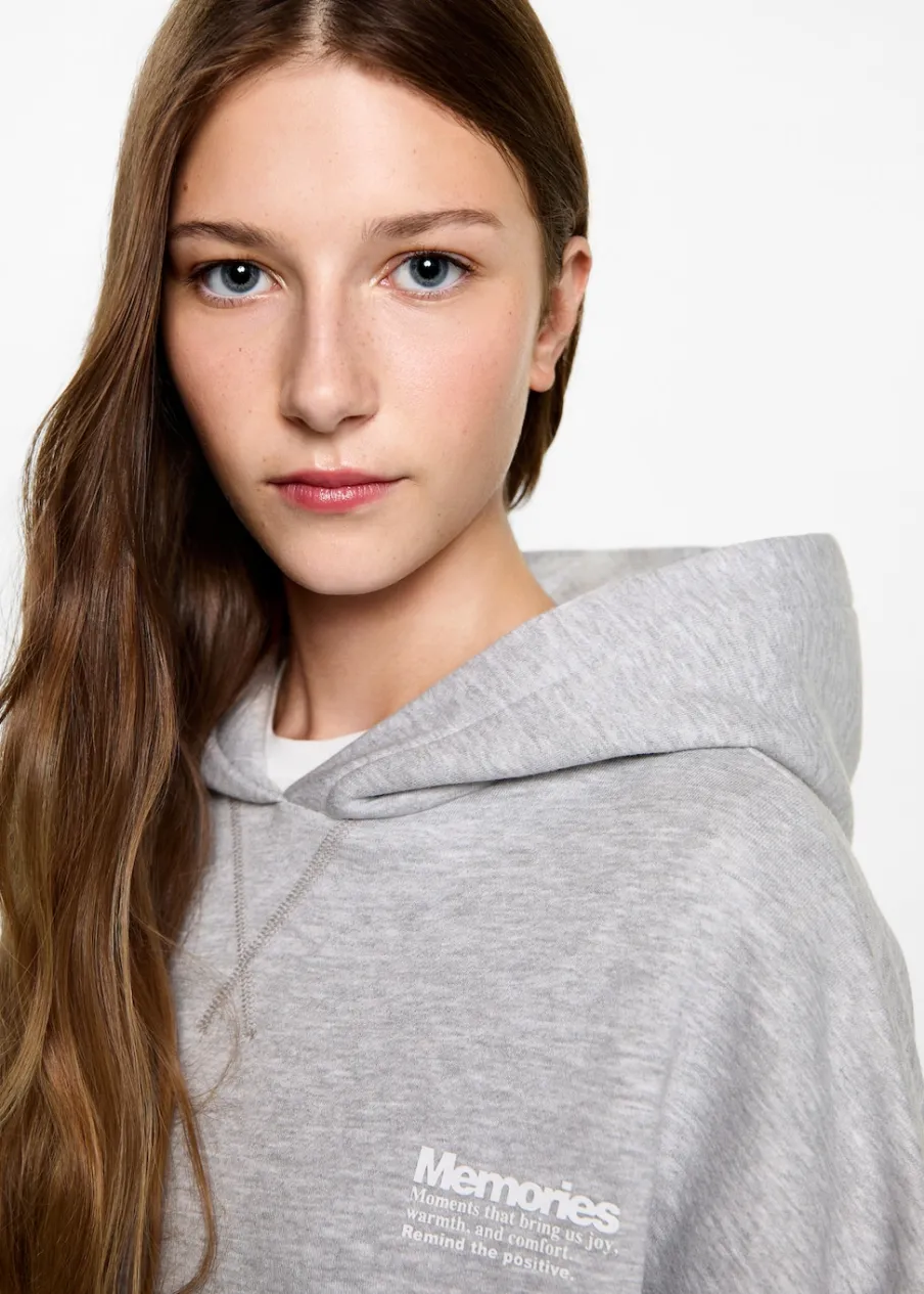 Bez zapięcia. Tkanina z bawełną. Model prosty. Z nadrukami. Kaptur. Długi rękaw. Modelka ma 172 cm wzrostu i nosi rozmiar M. Powrót do szkoły.