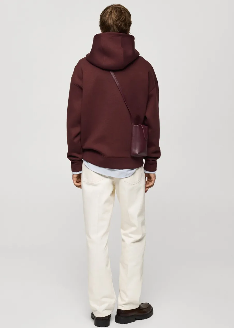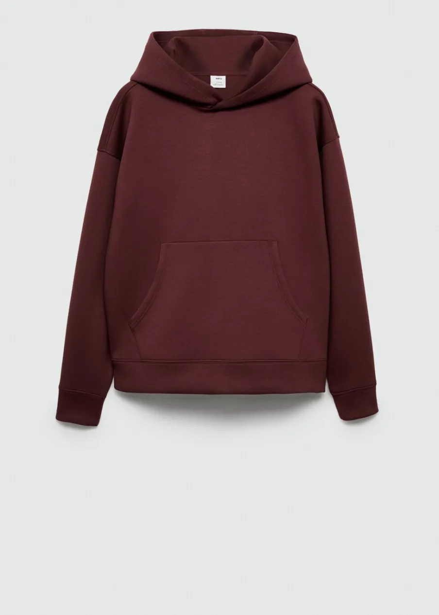 Z kapturem. Kieszeń kangurka. Model ma 190 cm wzrostu i nosi rozmiar M. Relaxed fit. Materiały z recyklingu. Długi rękaw wykończony ściągaczem.
