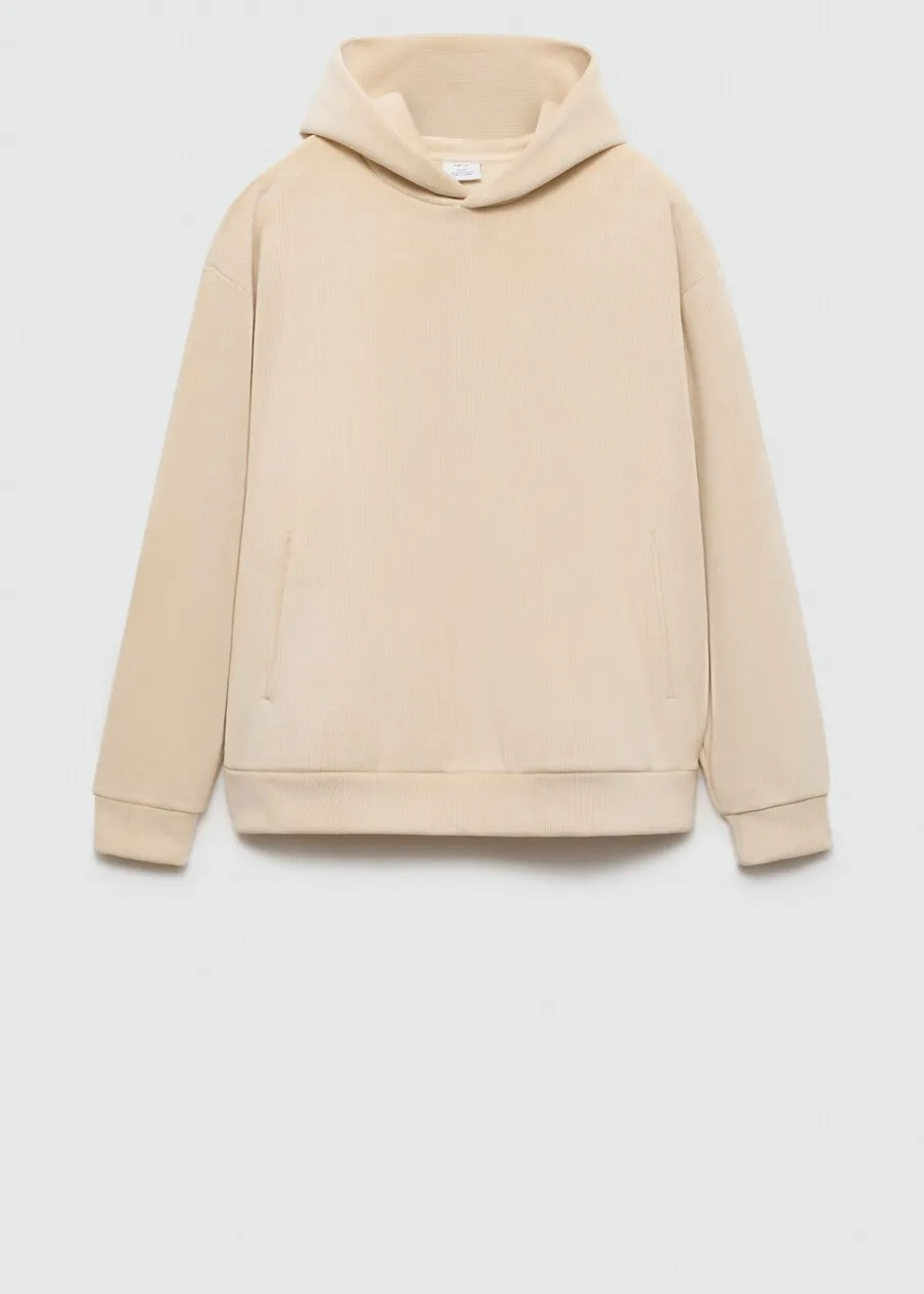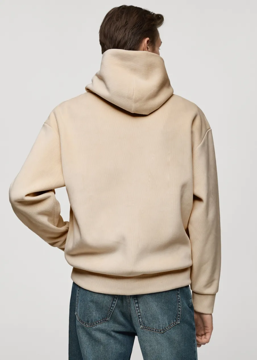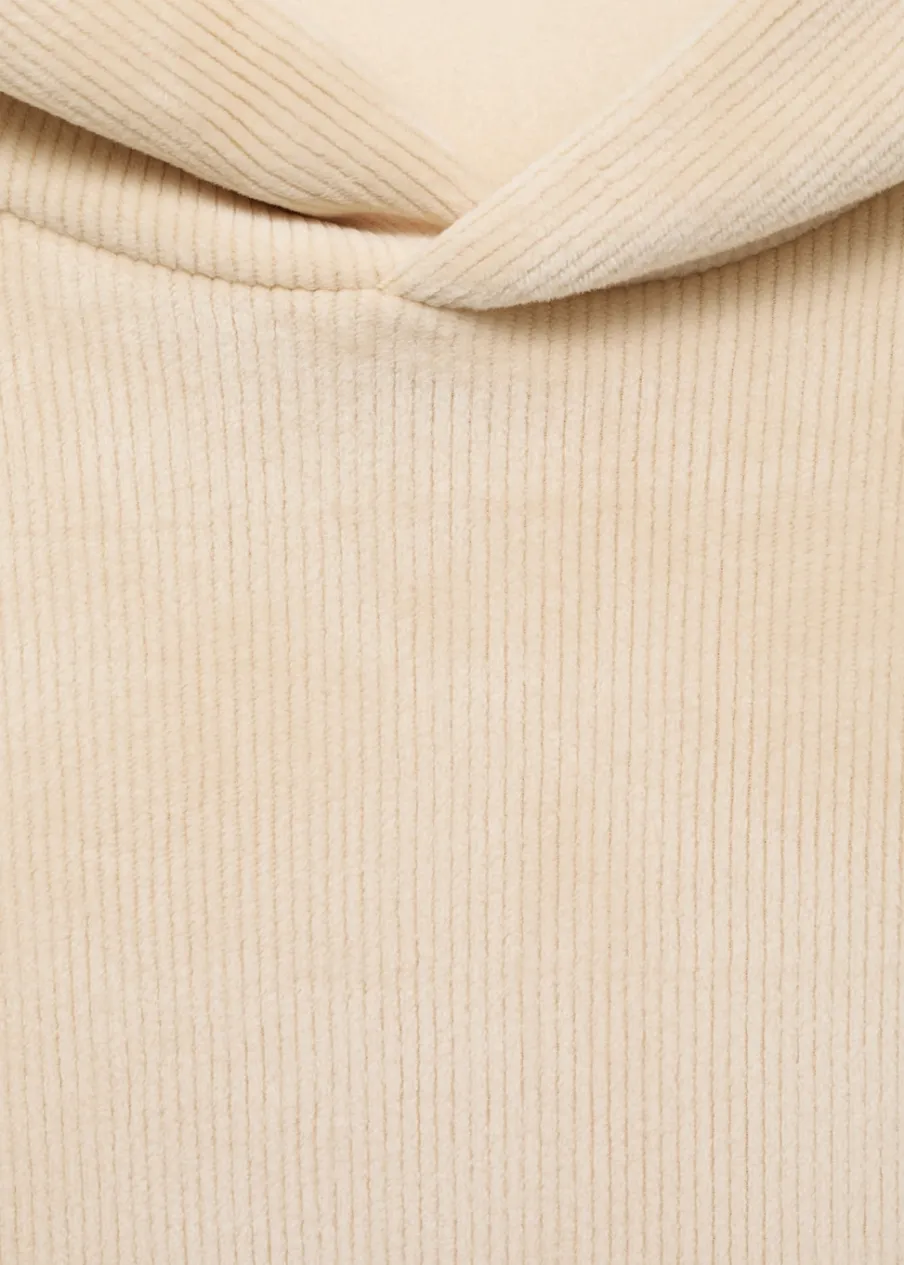 Krój regular. Sztruksowa tkanina. Tkanina z recyklingu. Z kapturem. Długi rękaw. Prosty dół. Model ma 190 cm wzrostu i nosi rozmiar M.