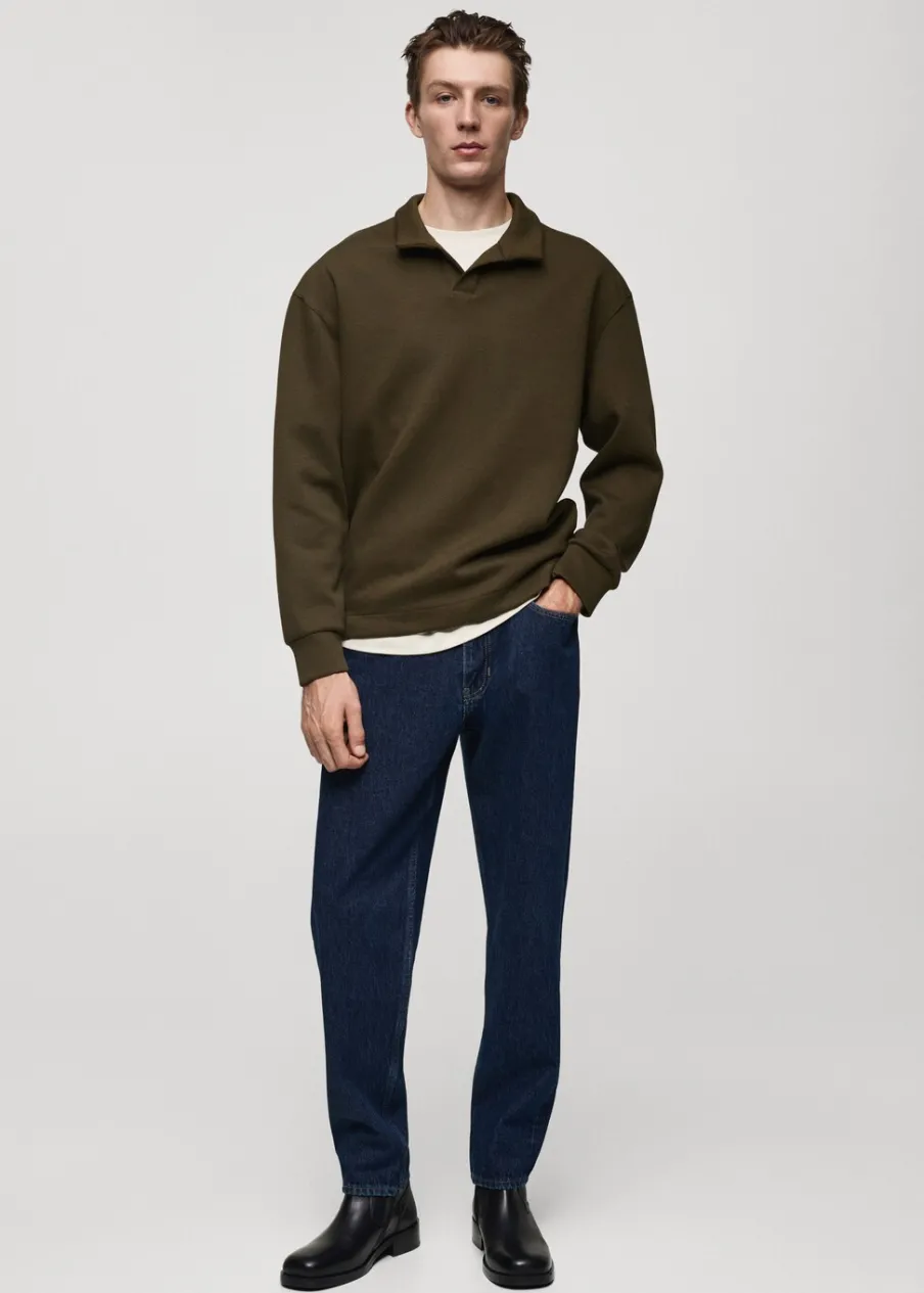 Kolor écru dostępny tylko online. Dzianina dresowa. Relaxed fit. Kołnierzyk polo. Mankiety i dół wykończone ściągaczem. Prosty dół z rozcięciami po bokach. Model ma 185 cm wzrostu i nosi rozmiar M.