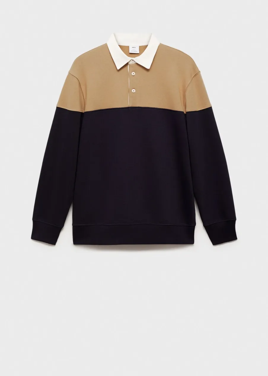 Krój regular. Tkanina bawełniana. Kołnierzyk polo z zapięciem na guziki. Dwukolorowy deseń. Mankiety i dół wykończone ściągaczem. Model ma 185 cm wzrostu i nosi rozmiar M.