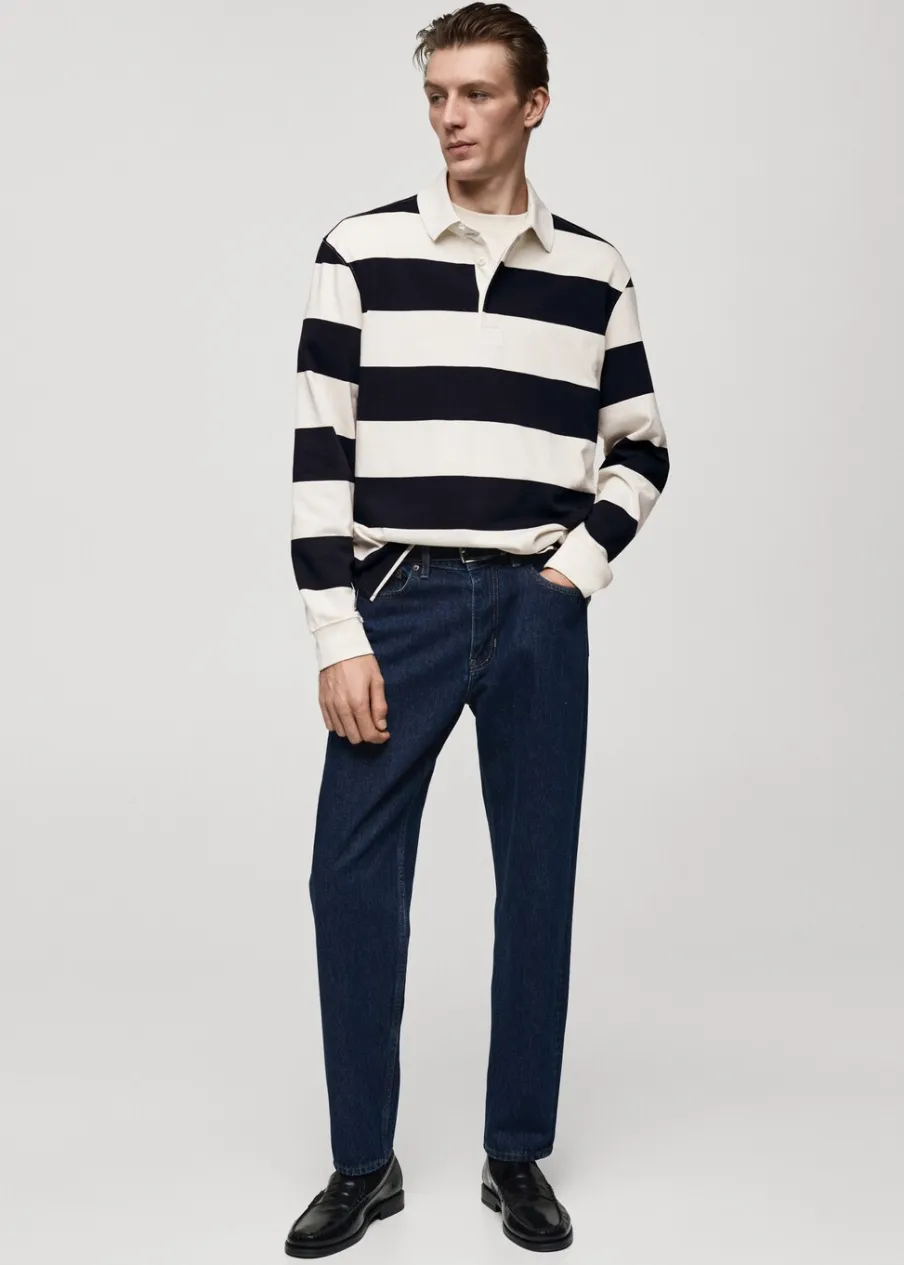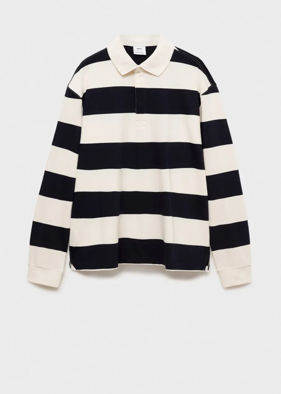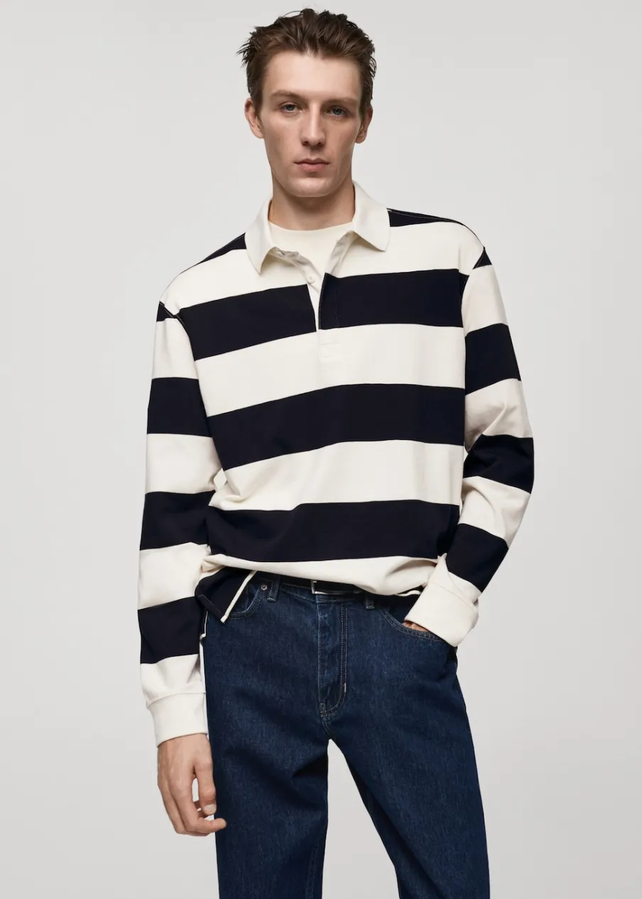 Kolor zielony dostępny tylko online. Tkanina z 100% bawełny. Kołnierzyk polo z zapięciem na guziki. Wzór w dwukolorowe paski. Mankiety wykończone ściągaczem. Model ma 185 cm wzrostu i nosi rozmiar M.