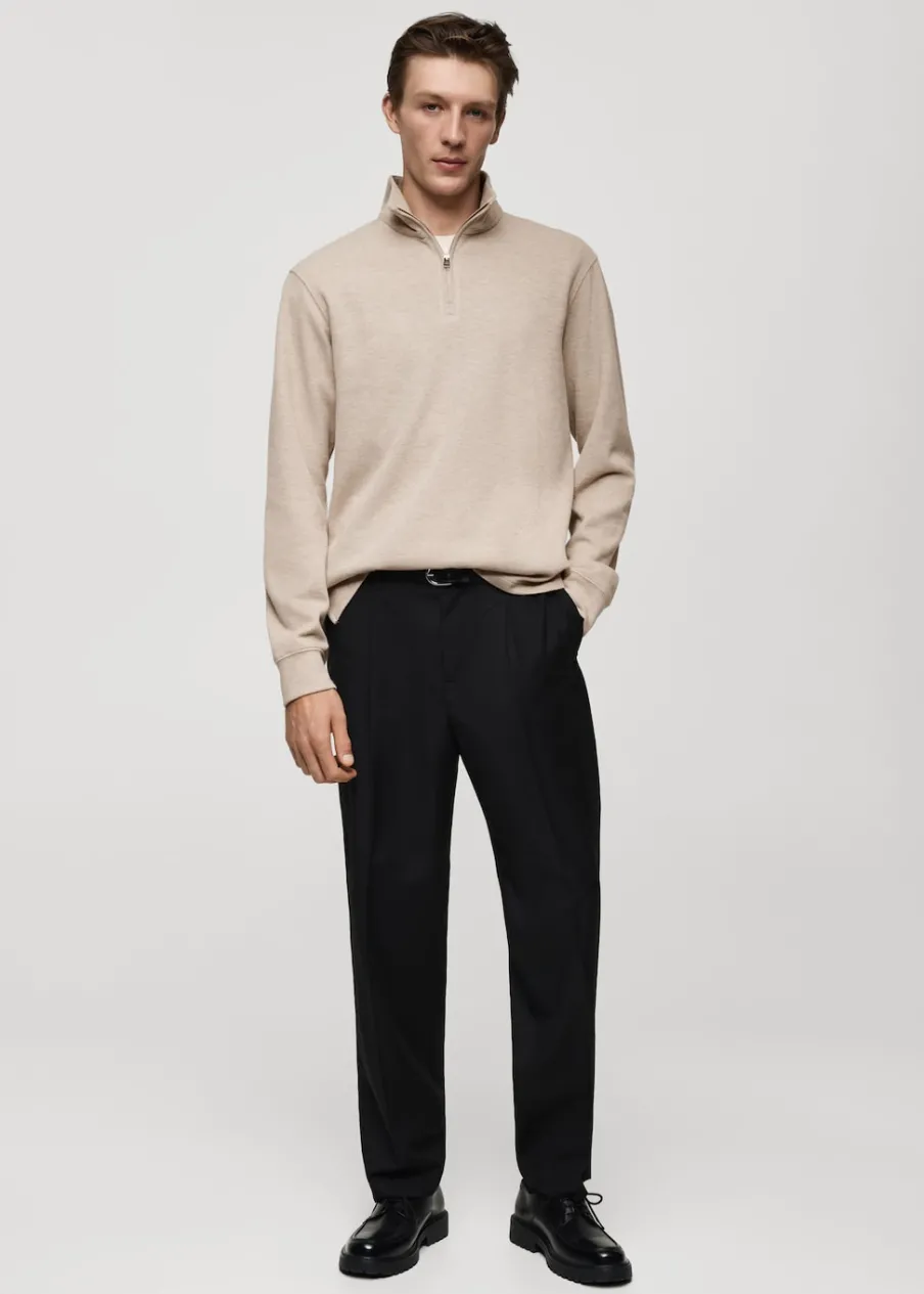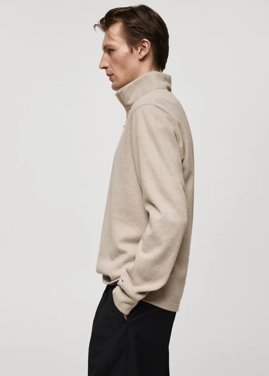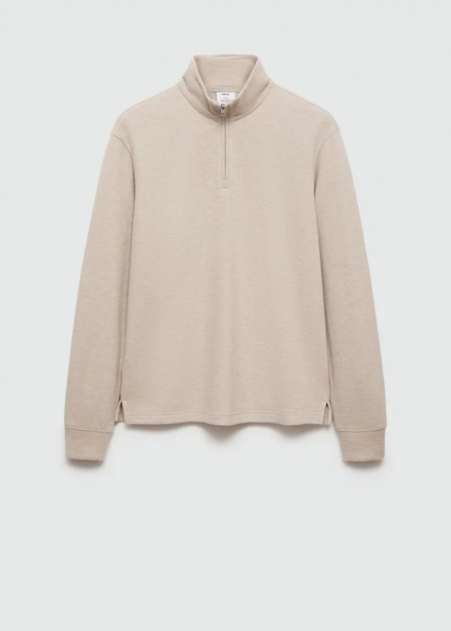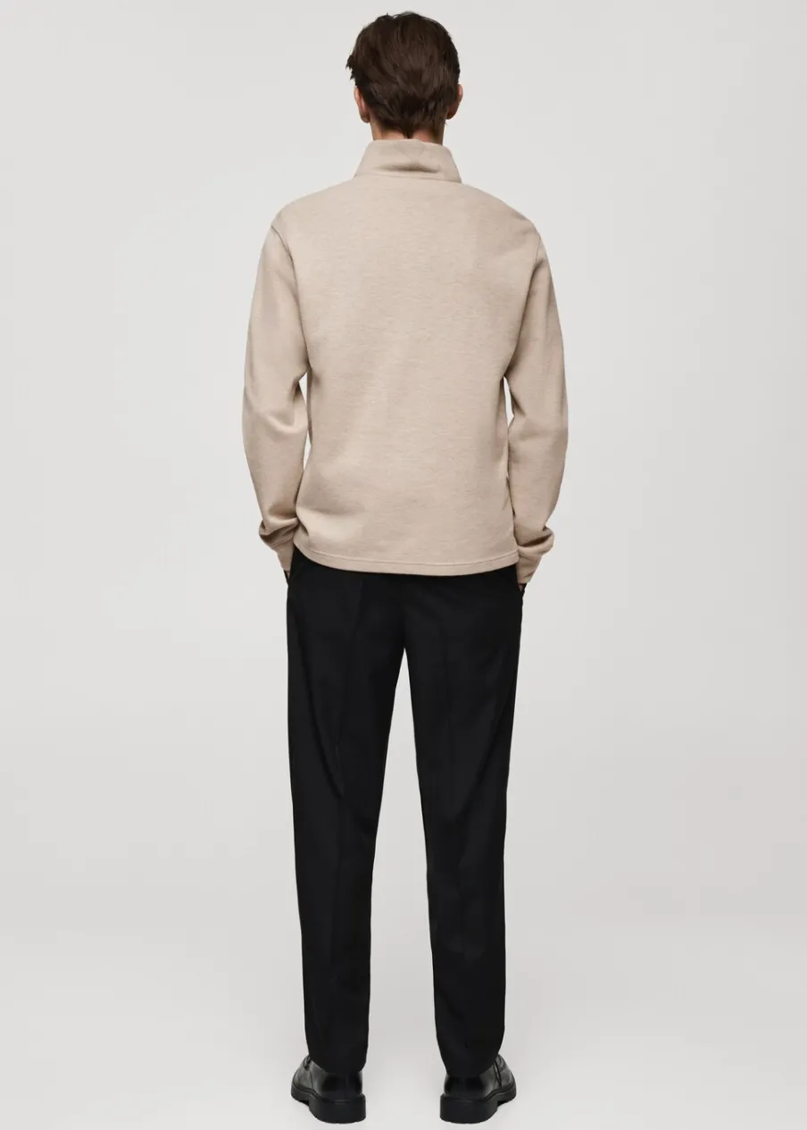 Tkanina z mieszanki bawełny i poliestru pochodzącej z recyklingu. Krój regular. Kominowy kołnierz zapinany na suwak. Długi rękaw. Prosty dół. Model ma 190 cm wzrostu i nosi rozmiar M.