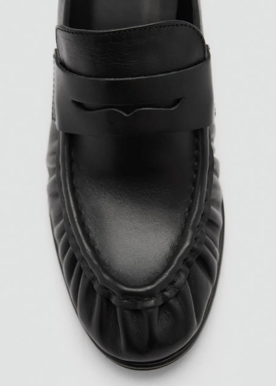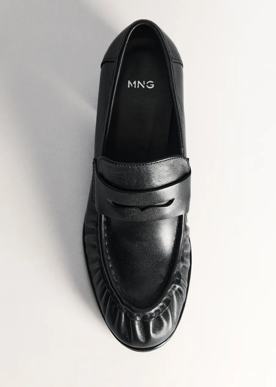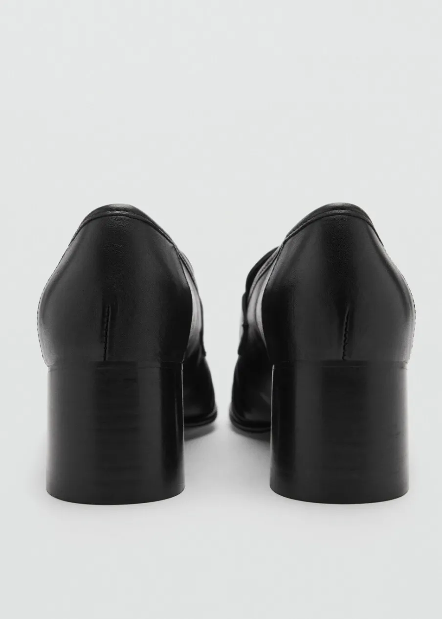 Opis100% skóra bydlęca. Obcas klockowy. Okrągły nosek. Obcas mierzy 6 cm. Bez zapięcia. Marszczony detal.