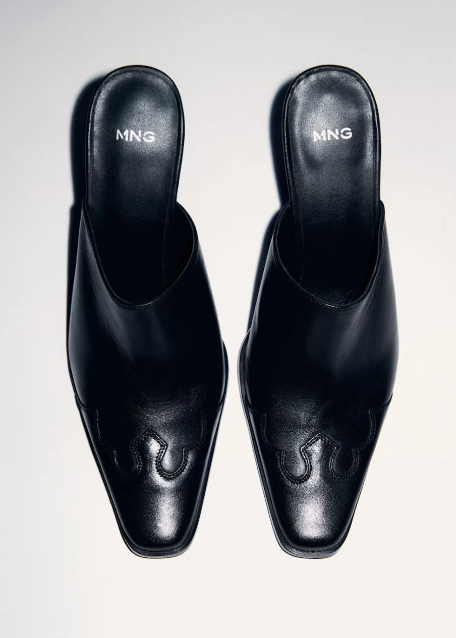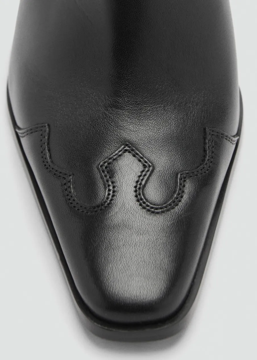 OpisSpiczaste zakończenie. Prostokątny obcas. Obcas mierzy 7 cm. Bez pięt. 100% skóra bydlęca.