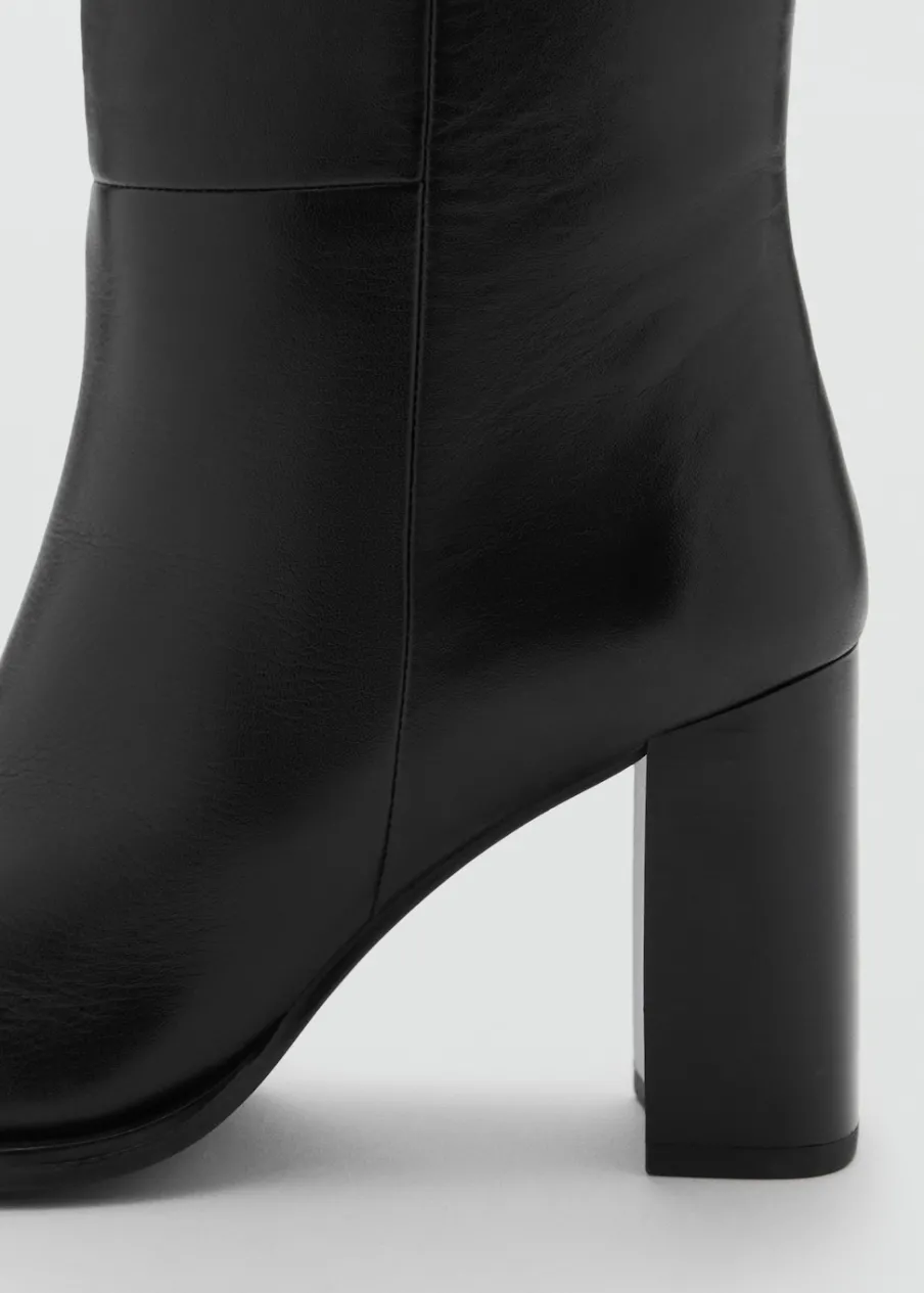 100% skóra bydlęca. Obcas klockowy. Spiczaste zakończenie. Zapięcie na zamek z boku. Obcas mierzy 8 cm.