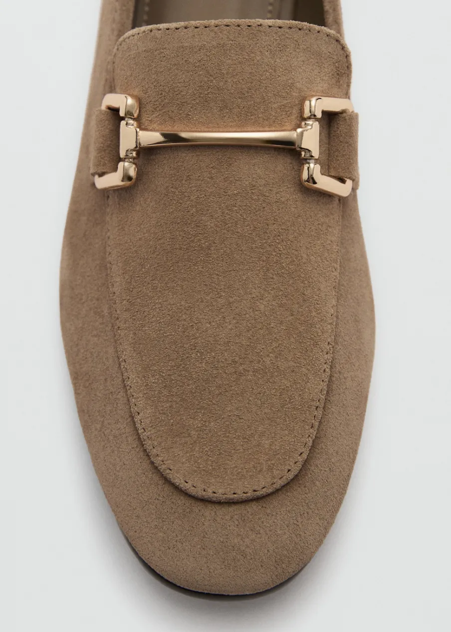 100% skóra bydlęca. Dwoina skórzana. Okrągły nosek. Płaska podeszwa. Bez zapięcia. Metalowy element.