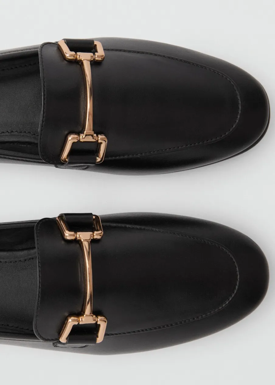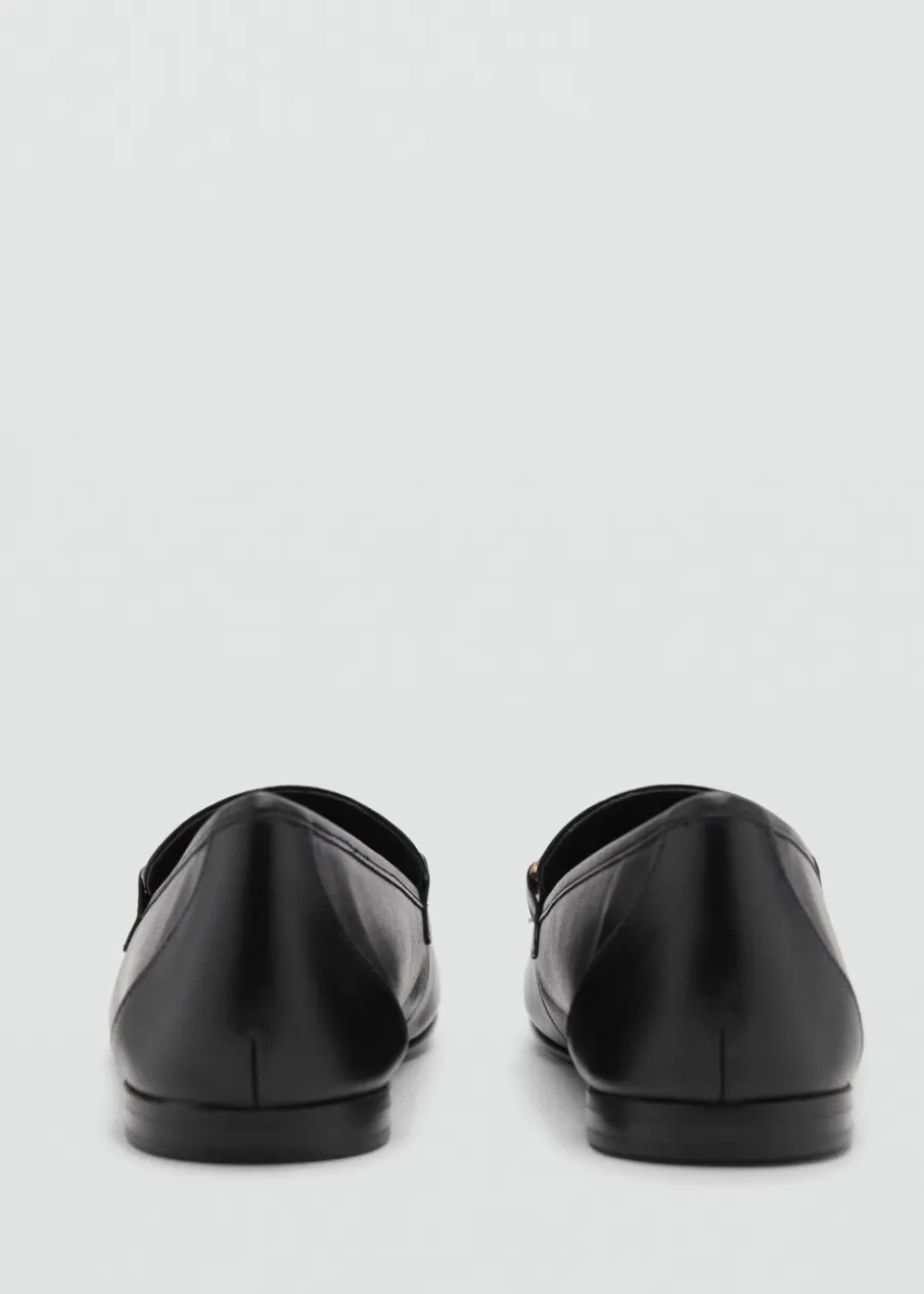 100% skóra bydlęca. Okrągły nosek. Płaska podeszwa. Bez zapięcia. Metalowy element. Wewnętrzna podszewka.