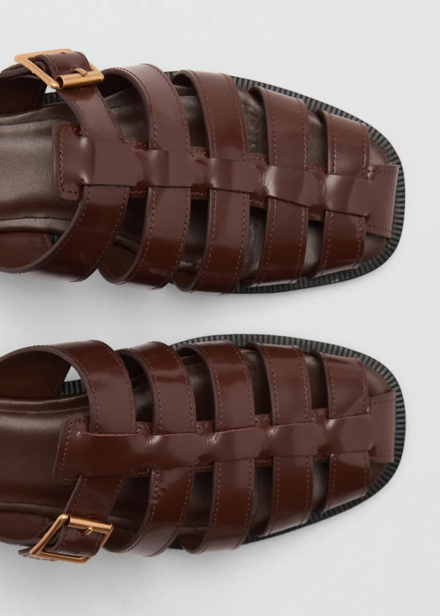 100% skóra bydlęca. Fason z odkrytą piętą. Płaska podeszwa. Bez zapięcia. Ozdobna klamra. Typu mule.
