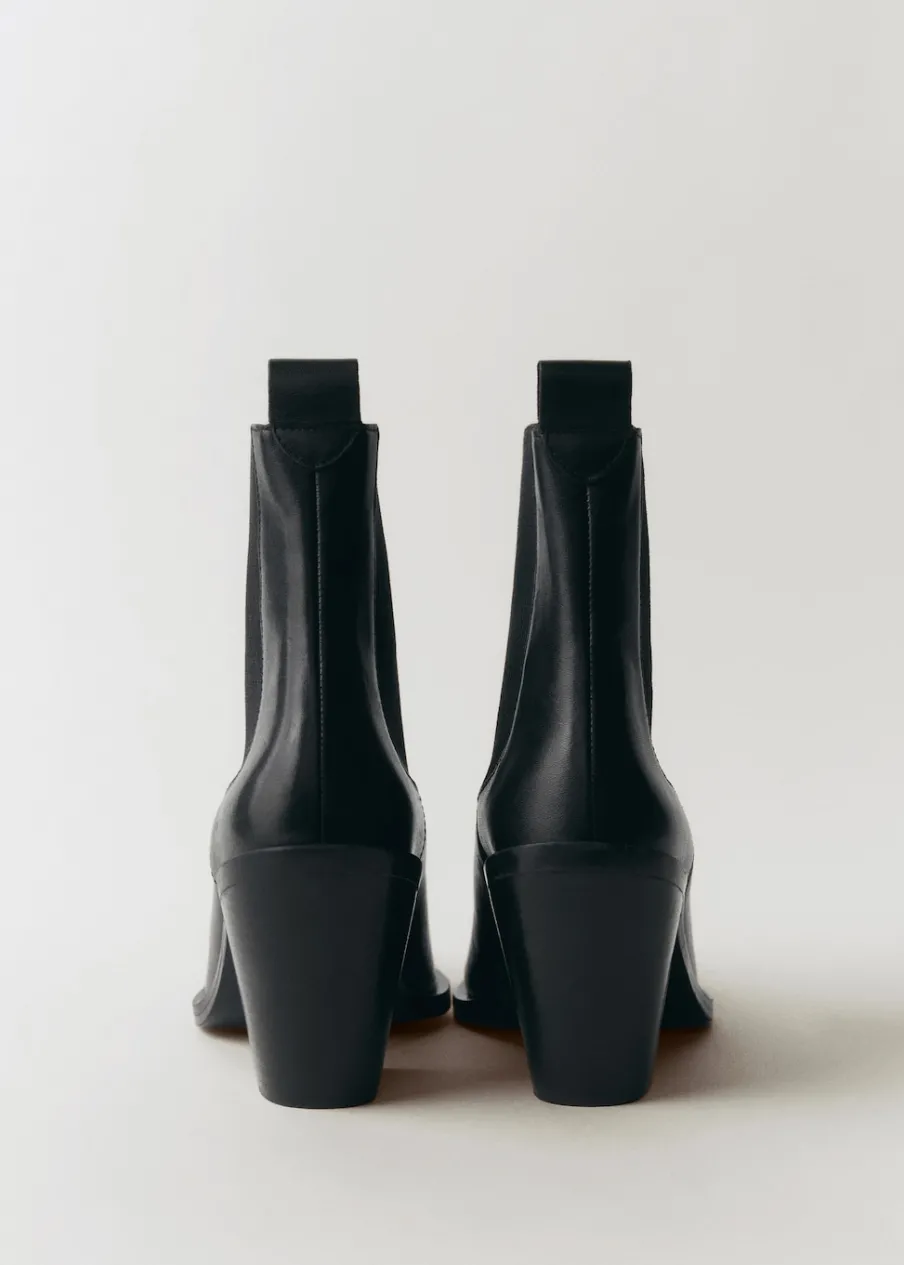 100% skóra bydlęca. W kowbojskim stylu. Spiczaste zakończenie. Obcas klockowy. Elastyczny pasek. Bez zapięcia. Wewnętrzna podszewka. Obcas mierzy 8,5 cm.