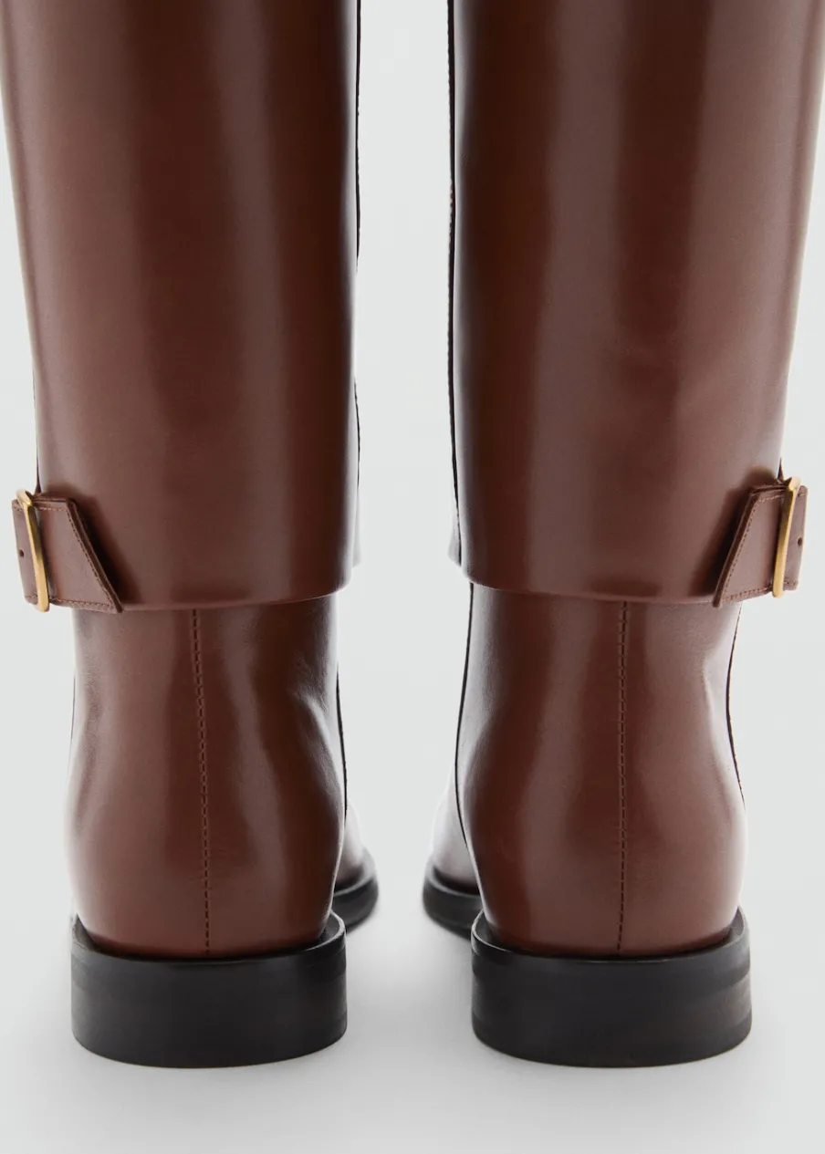 Skóra bydlęca. Płaska podeszwa. Bez zapięcia. Ozdobna klamra. Okrągły nosek.