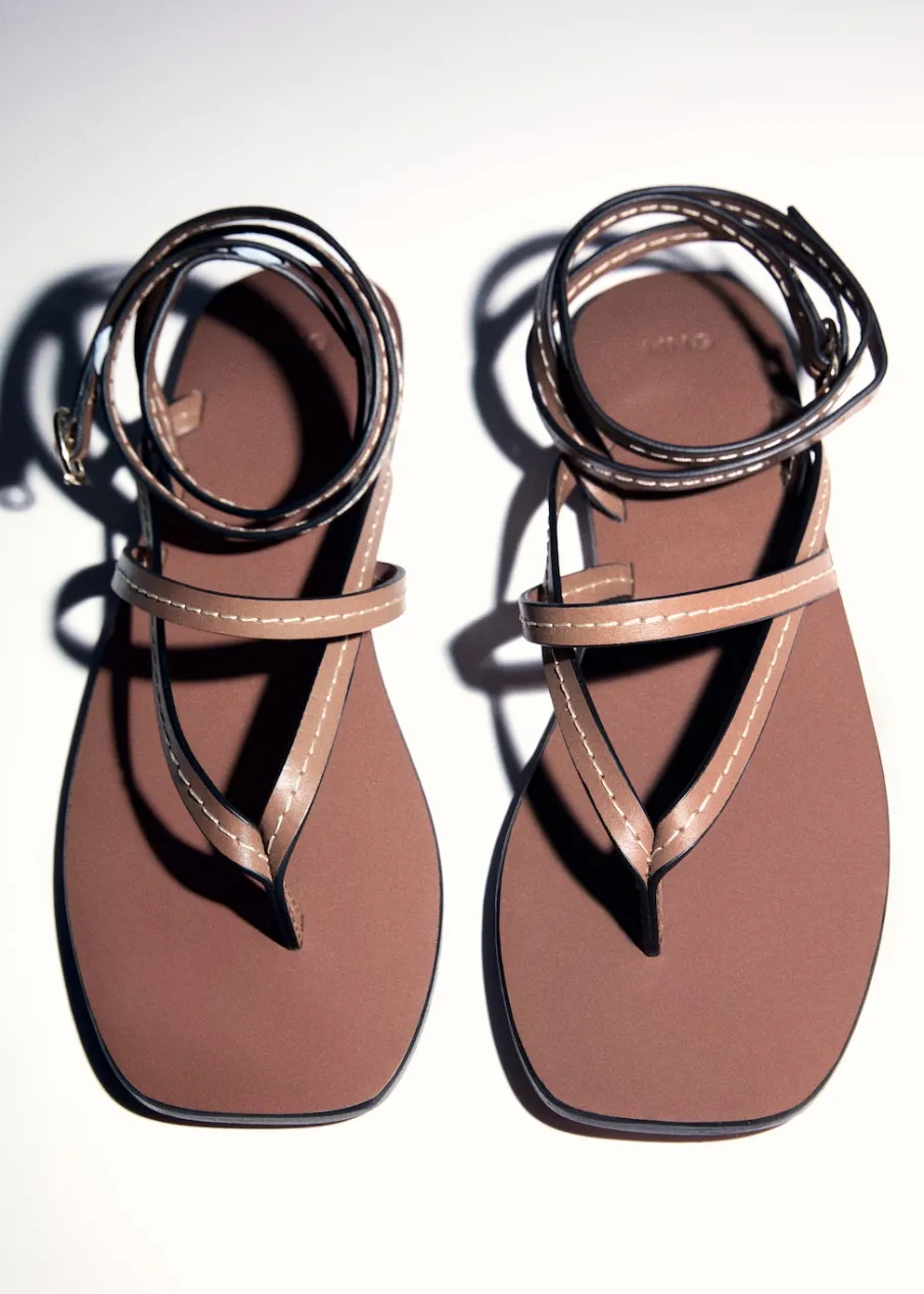 100% skóra bydlęca. Model z paskami. Płaska podeszwa. Zapięcie na klamrę. Ozdobne szwy. Model z paskiem między palcami.
