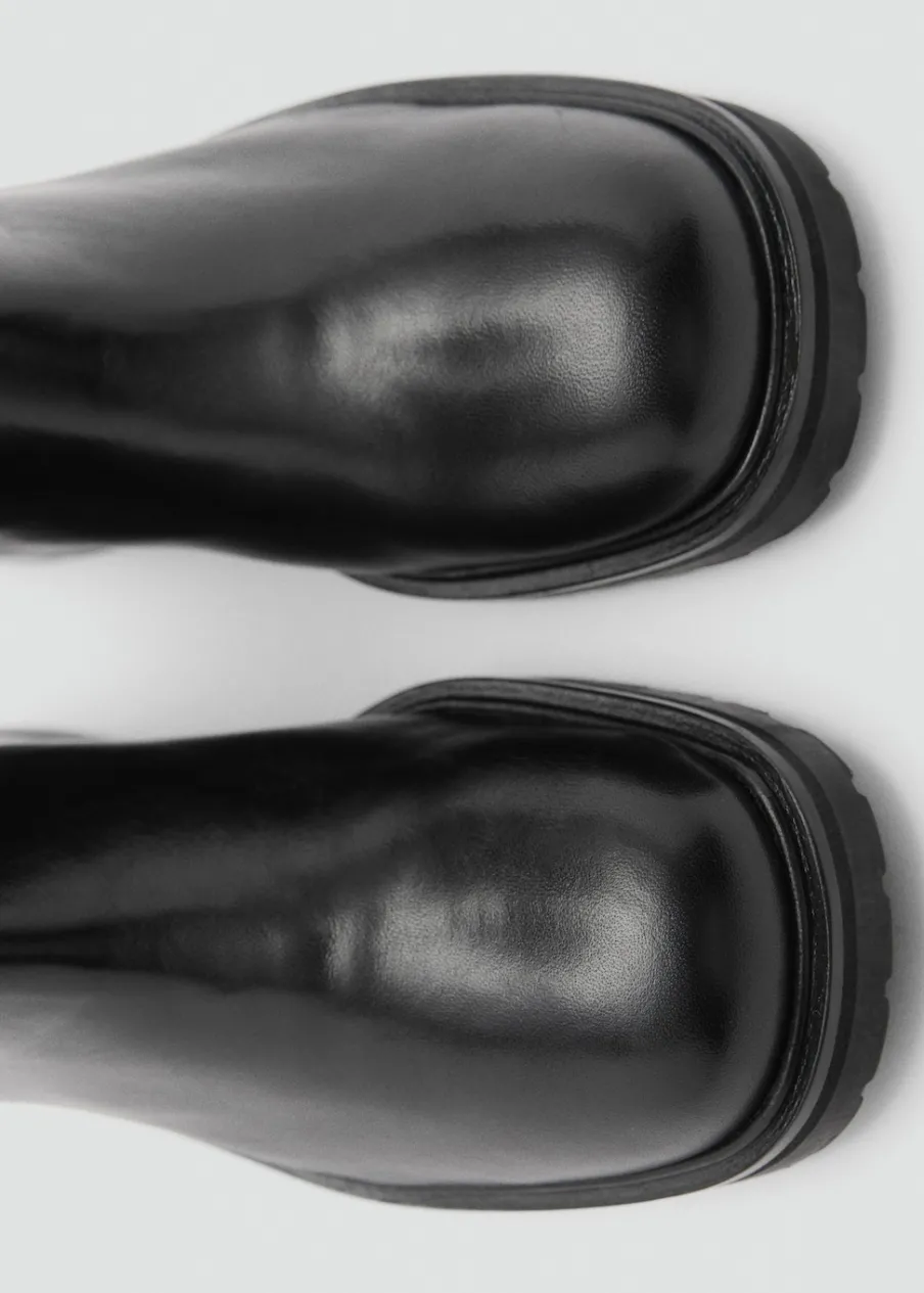 100% skóra nappa. Okrągły nosek. Wysoka cholewka. Platforma. Zapięcie z tyłu na suwak.