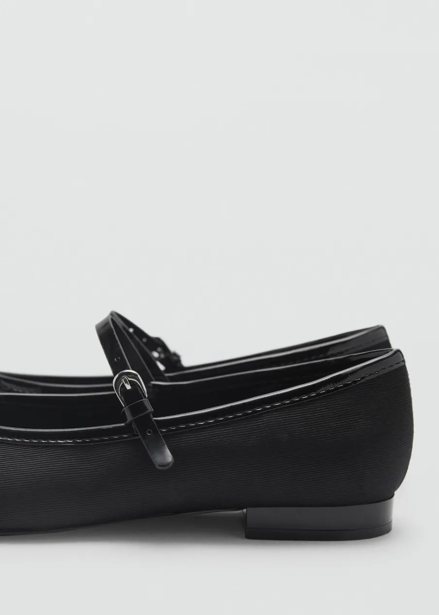 Okrągły nosek. Płaska podeszwa. Zapięcie na pasek ze sprzączką. Ozdobna kokardka. Wewnętrzna podszewka.