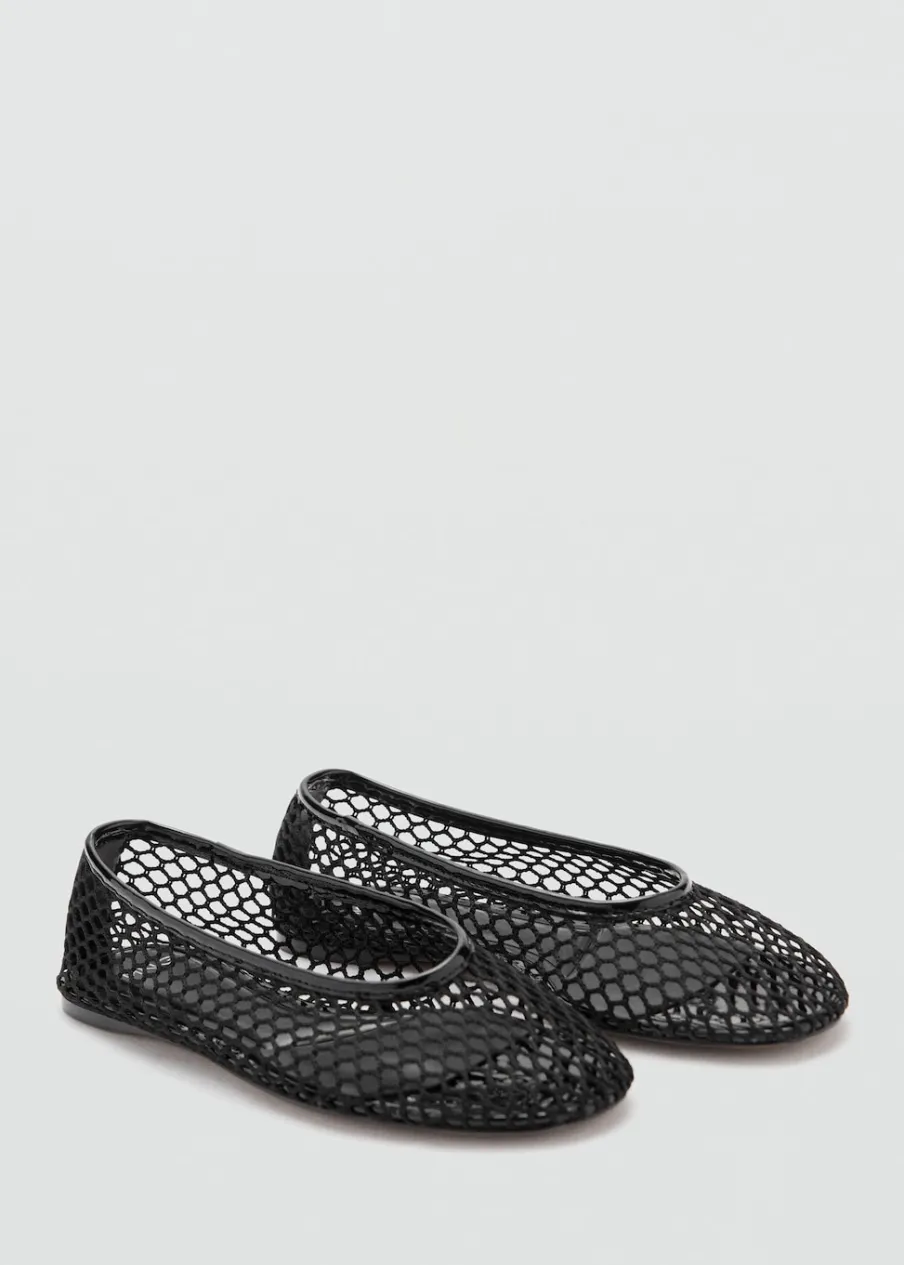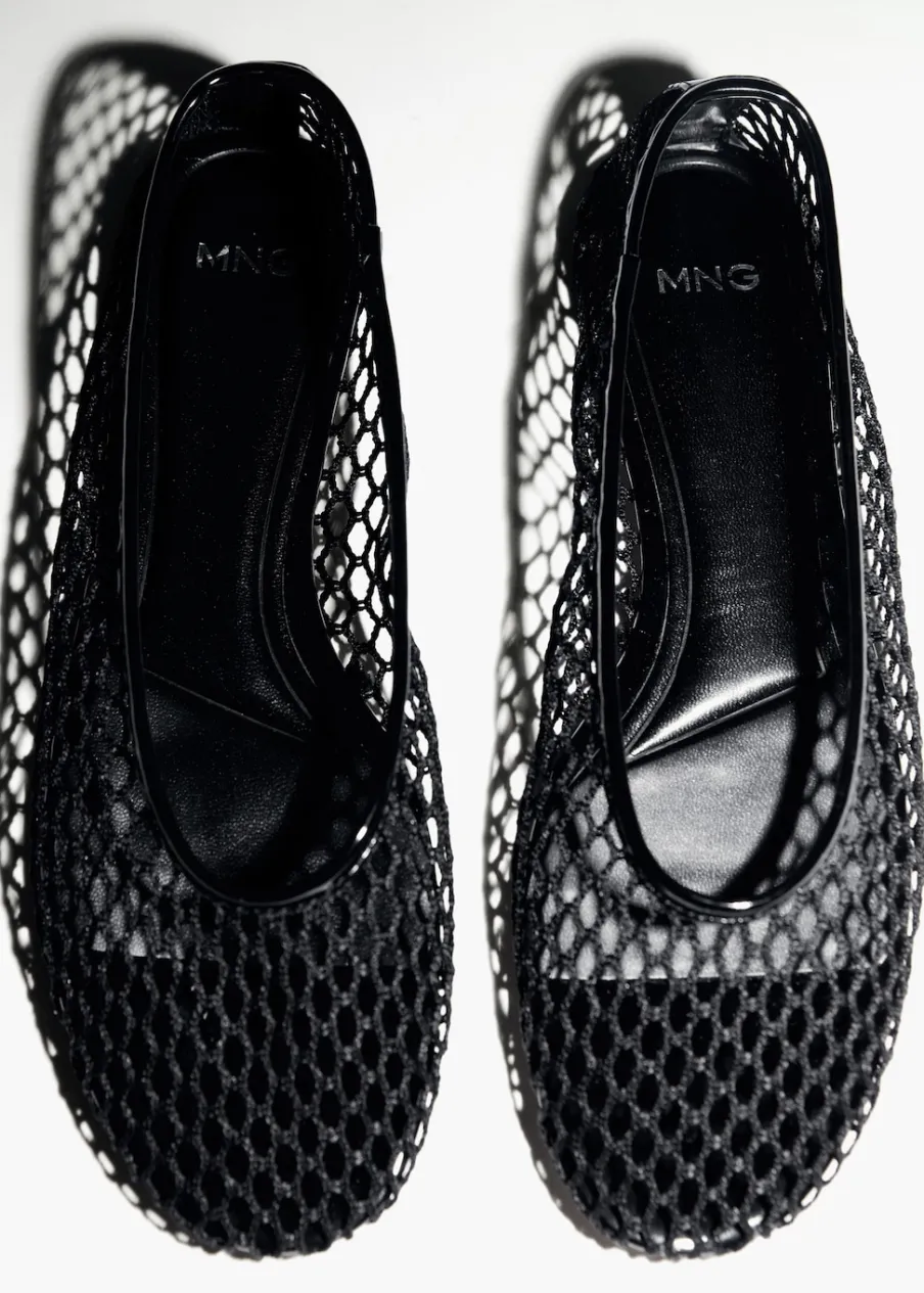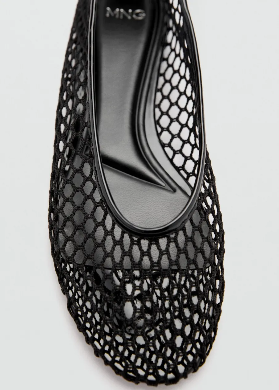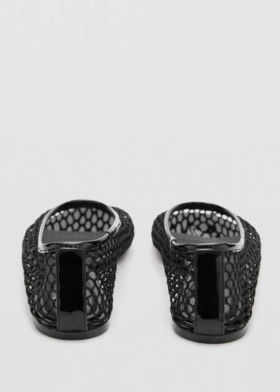 Siateczkowa tkanina. Płaska podeszwa. Okrągły nosek. Bez zapięcia.
