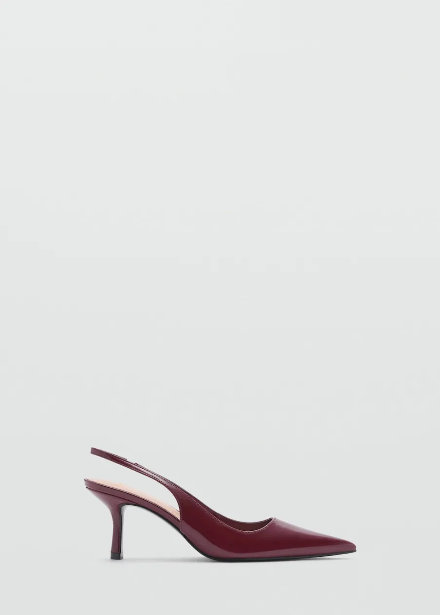 Imitacja lakierowanej skóry. Obcas typu kitten. Obcas szpilka. Spiczaste zakończenie. Bez zapięcia. Obcas mierzy 7,5 cm.