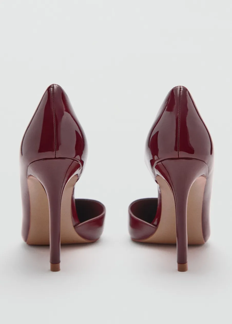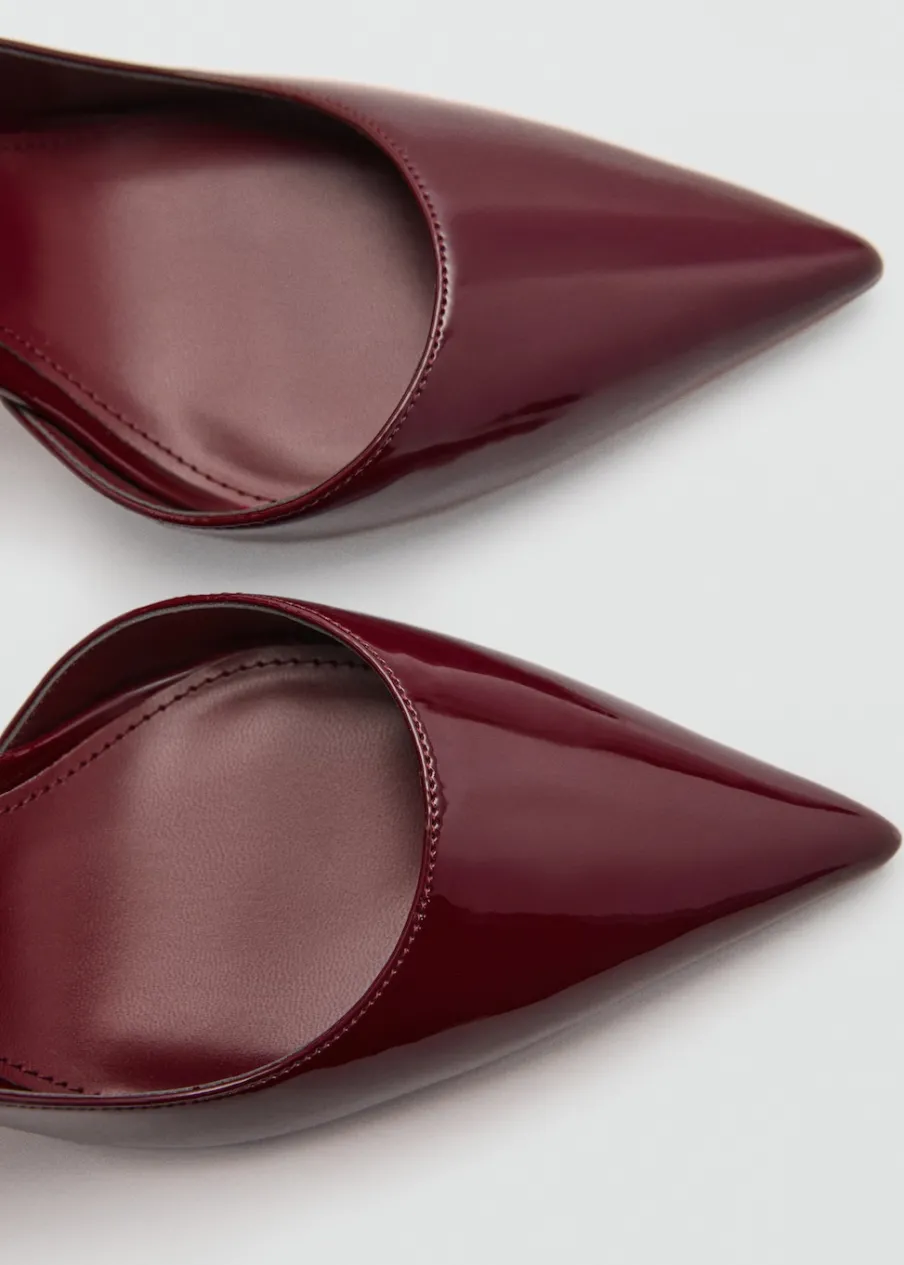 Imitacja lakierowanej skóry. Asymetryczny krój. Rozcięcie boczne. Obcas szpilka. Spiczaste zakończenie. Obcas mierzy 10 cm. Wysoki obcas.