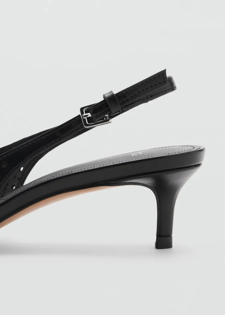 Fason z odkrytą piętą. Spiczaste zakończenie. Detal z frędzli. Ażurowe detale. Obcas mierzy 5 cm. Zapięcie na klamrę. Wewnętrzna podszewka.