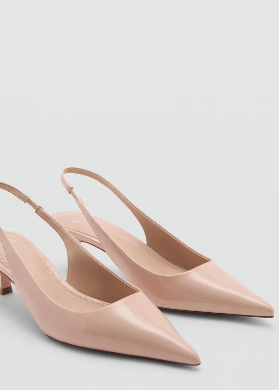 OpisFason z odkrytą piętą. Spiczaste zakończenie. Obcas typu kitten. Bez zapięcia. Obcas mierzy 4 cm.