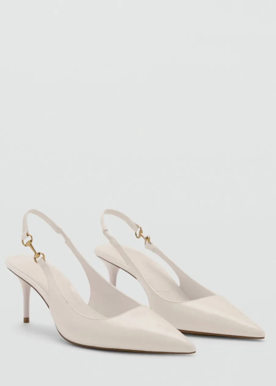 OpisEfekt skóry. Fason z odkrytą piętą. Spiczaste zakończenie. Obcas mierzy 7,5 cm. Bez zapięcia. Ogniwo. Wewnętr…