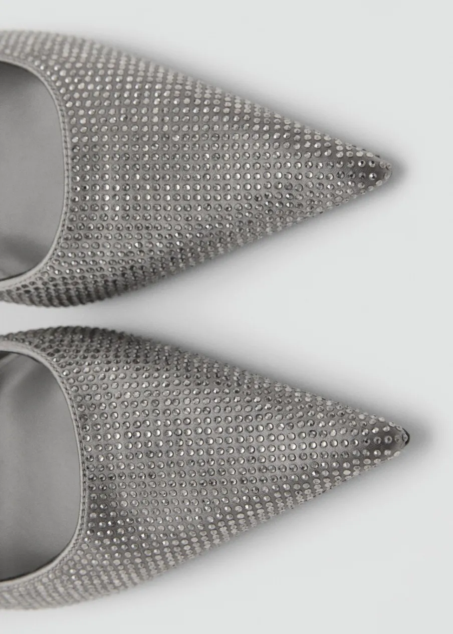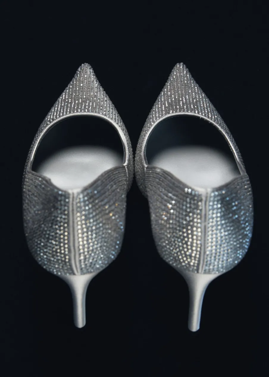OpisModel ze strasu. Spiczaste zakończenie. Obcas szpilka. Obcas mierzy 9,5 cm. Wysoki obcas. Kolekcja wizytowa.