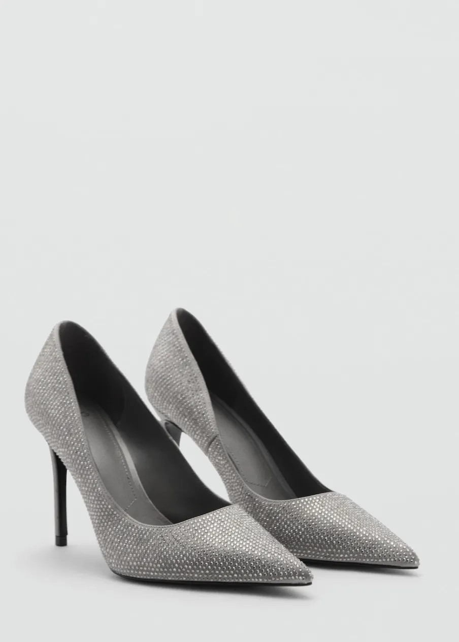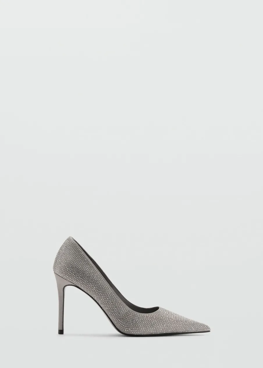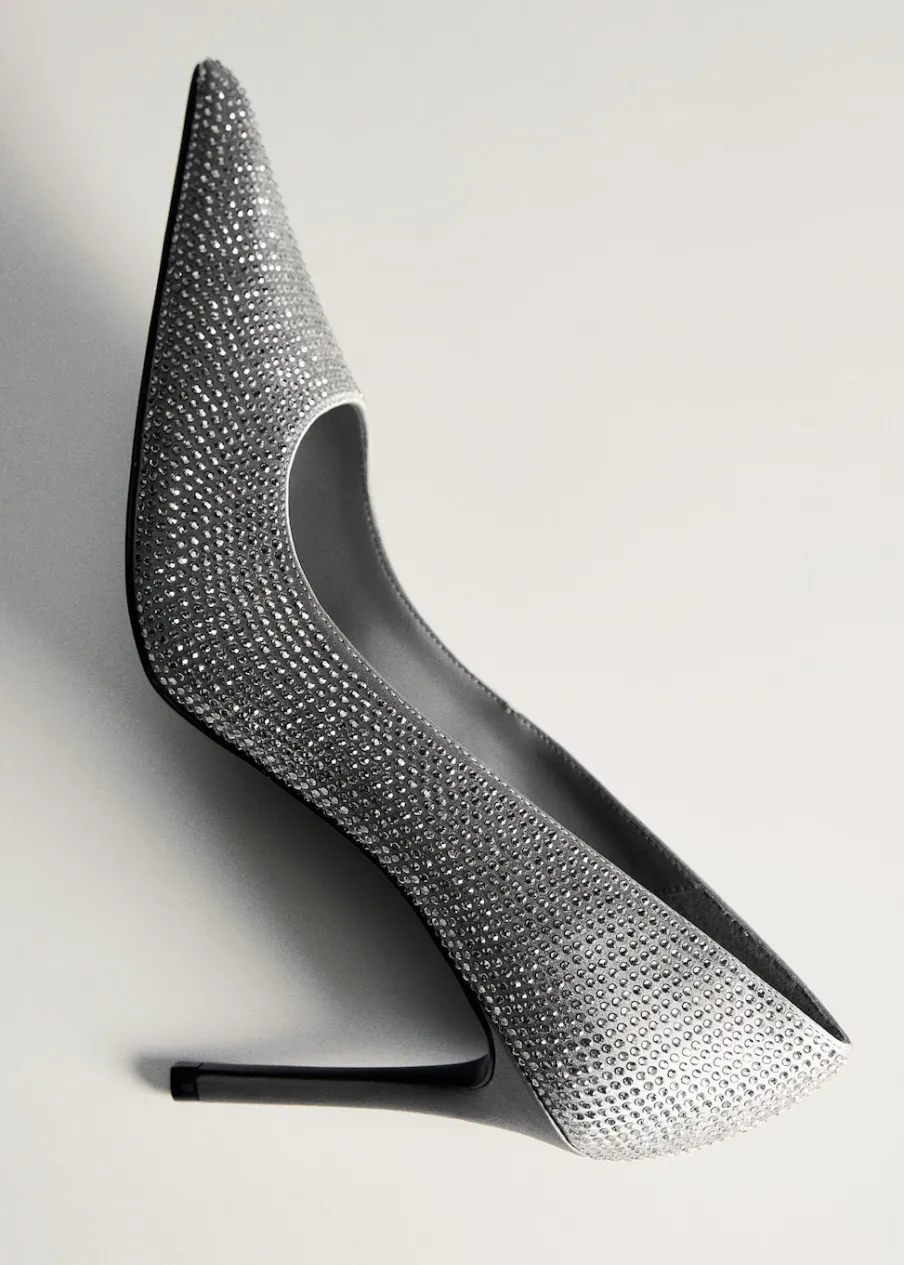 Model ze strasu. Spiczaste zakończenie. Obcas szpilka. Obcas mierzy 9,5 cm. Wysoki obcas. Kolekcja wizytowa.
