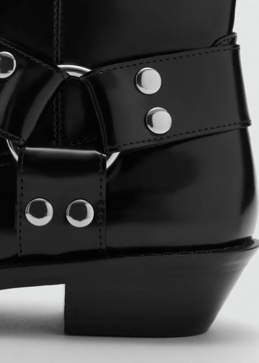 Kwadratowy nosek. Metalowe elementy. Bez zapięcia.