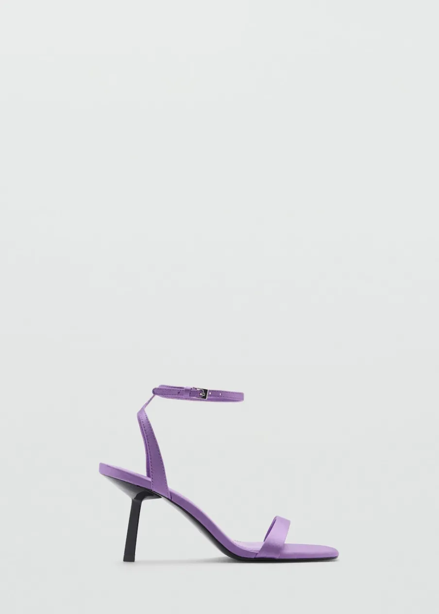 OpisObcas szpilka. Kwadratowy nosek. Rozporek z przodu. Pasek wokół kostki. Zapięcie na klamrę. Wysoki obcas. Obcas …