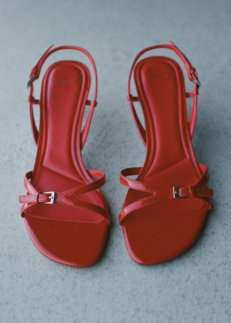 Model z paskami. Obcas szpilka. Rozporek z przodu. Obcas mierzy 7,5 cm. Zapięcie na klamrę. Ozdobna klamra.