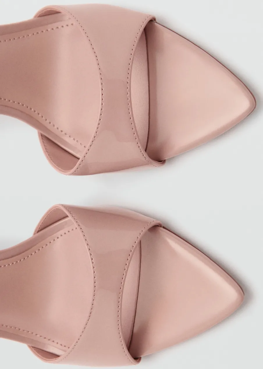 Efekt skóry. Model z paskami. Obcas szpilka. Pasek wokół kostki. Zapięcie na klamrę. Wewnętrzna podszewka. Obcas mierzy 8,5 cm. Wysoki obcas.