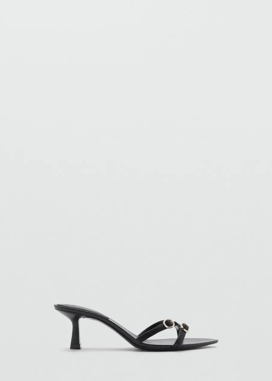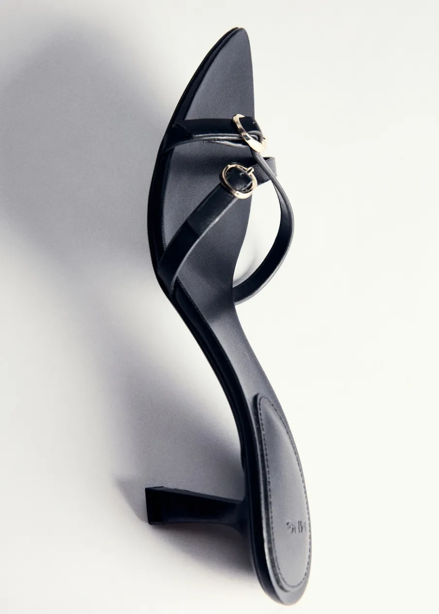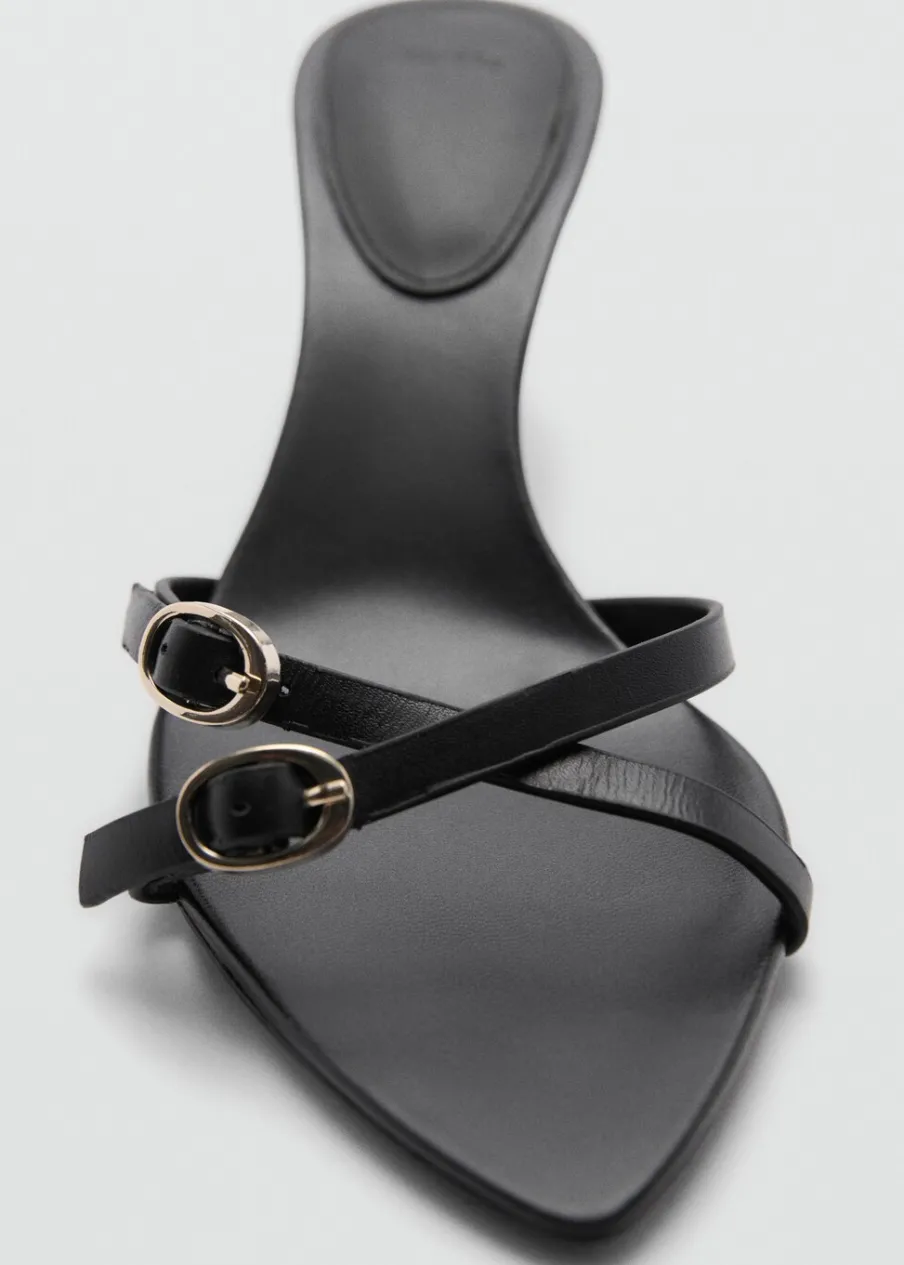 Model z paskami. Bez pięt. Rozporek z przodu. Obcas typu kitten. Ozdobne klamry. Skóra bydlęca.