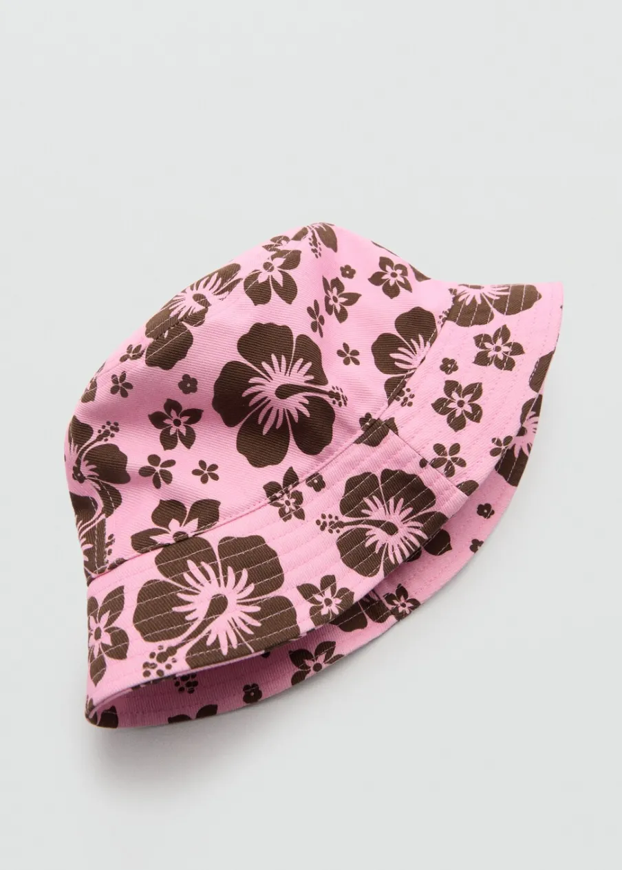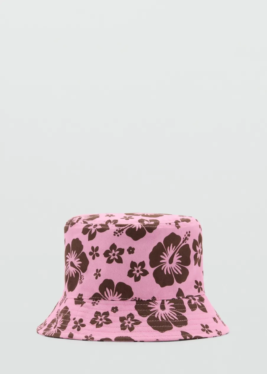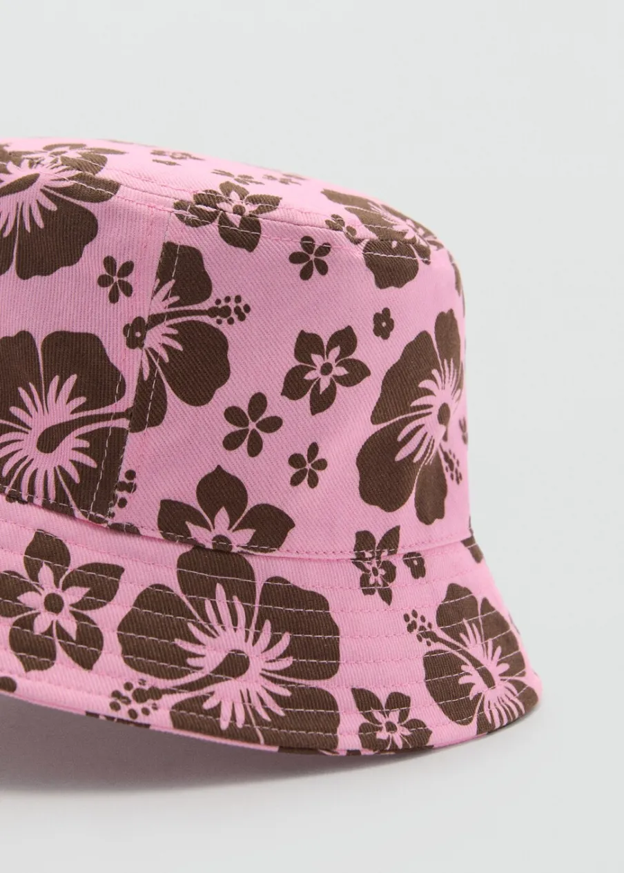 OpisFason bucket hat. Bez zapięcia. Tkanina z 100% bawełny. Nadruk.