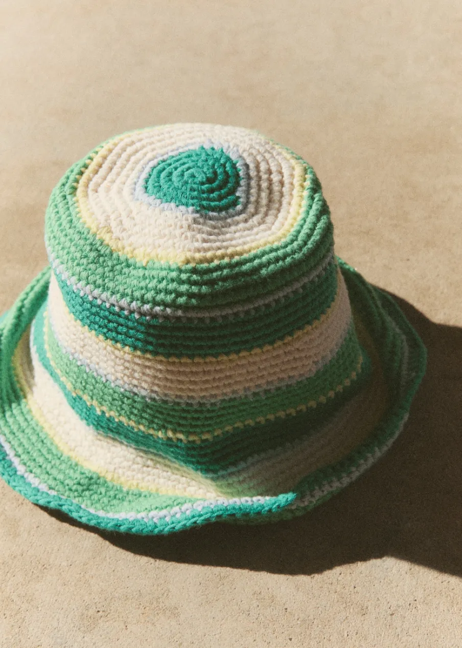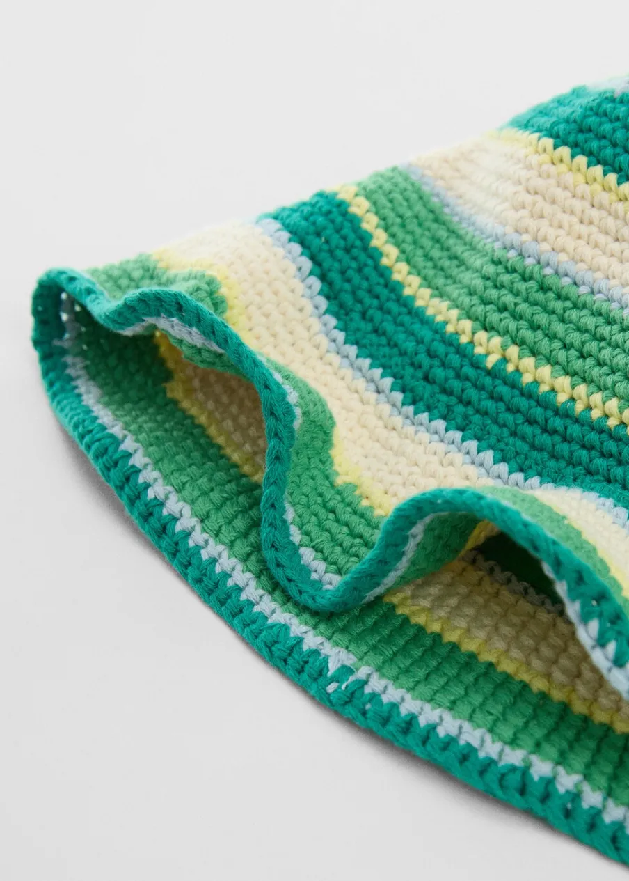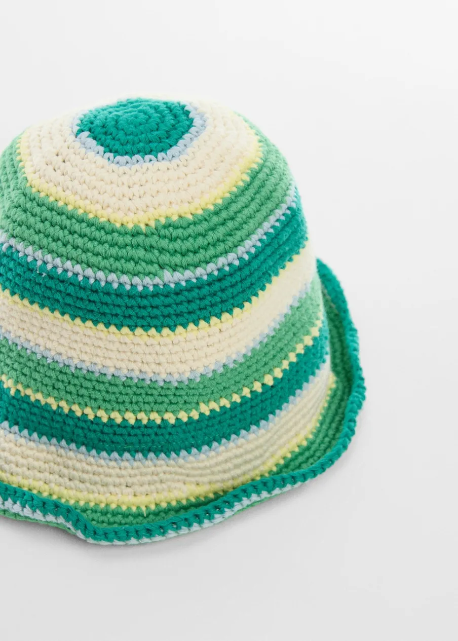 OpisSzydełkowy model. Fason bucket hat. Bez zapięcia. Tkanina z 100% bawełny.