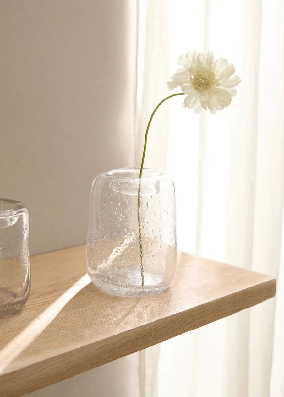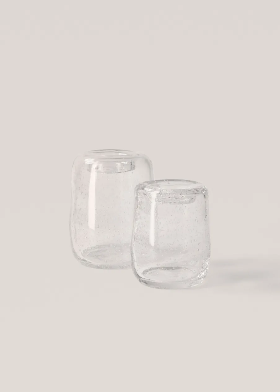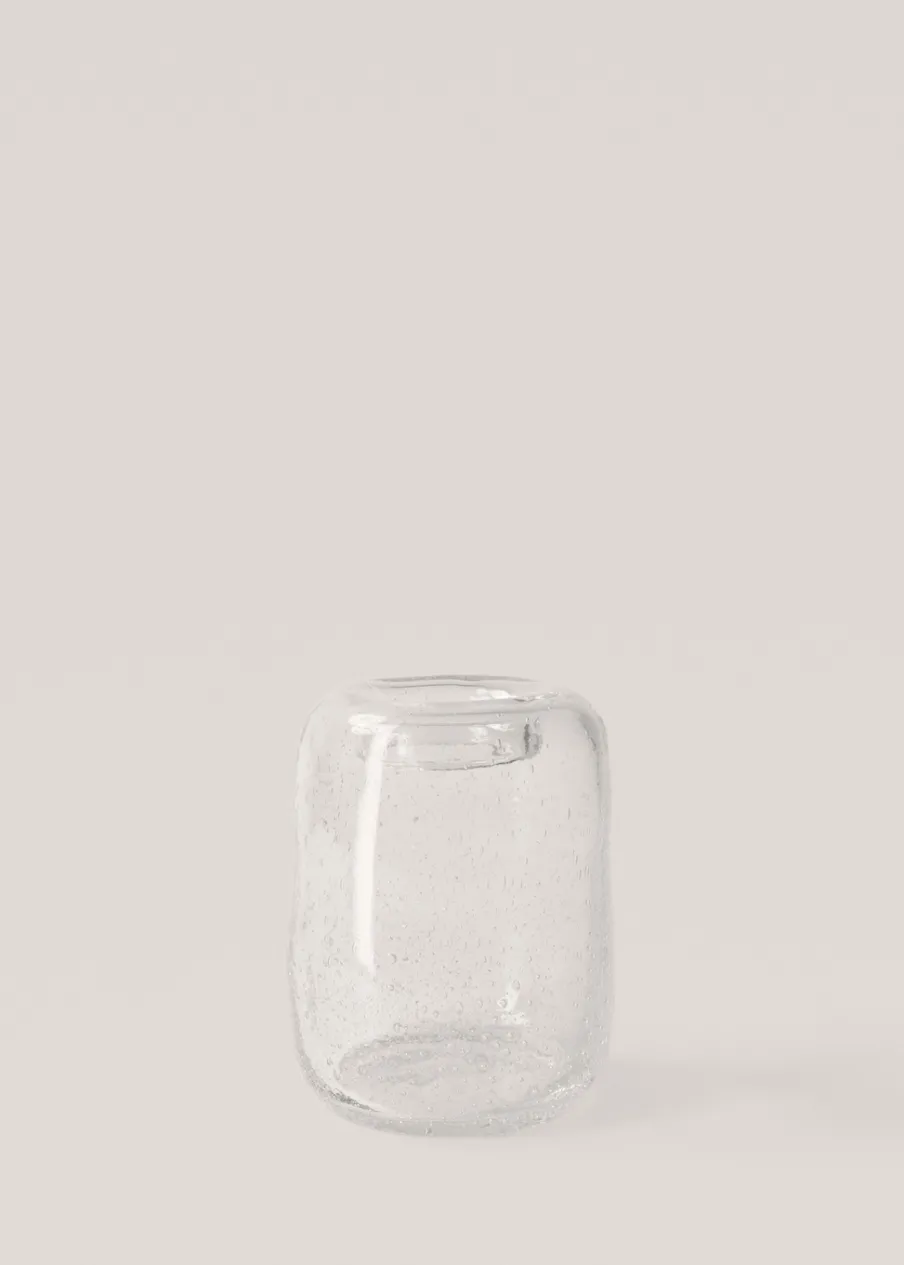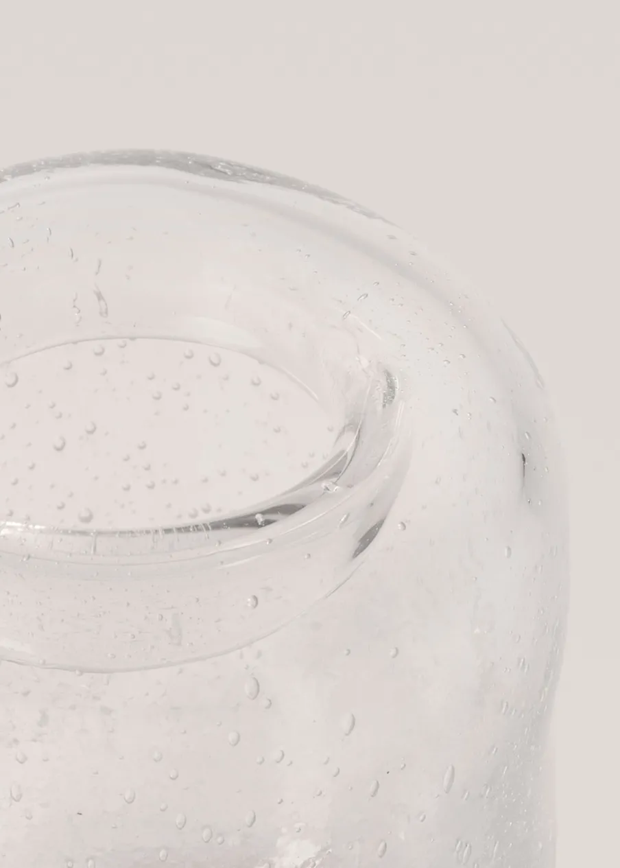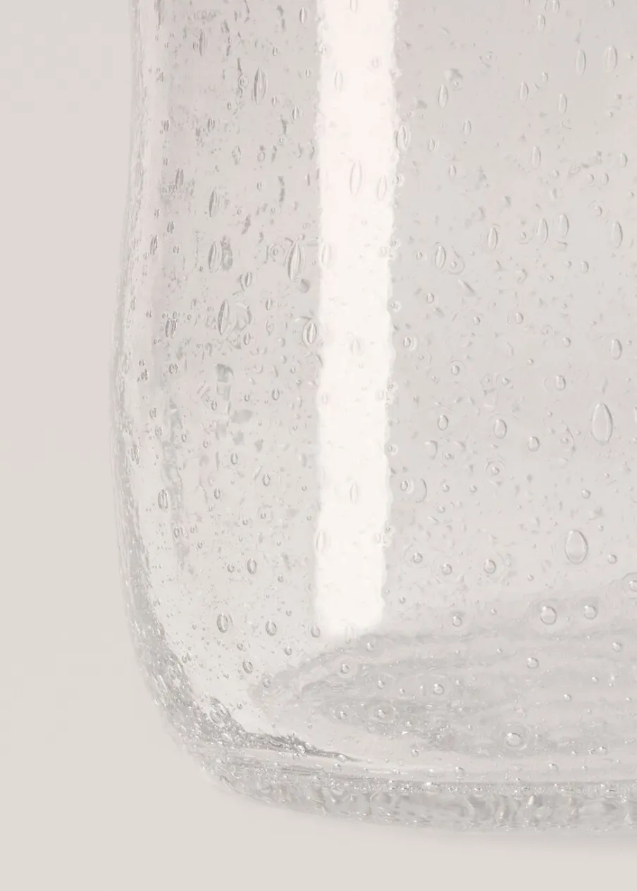 100% szkło. Wytłaczana tekstura. Kształt walca. Można wypełnić wodą. Pojemność: 950 ml. Wymiary: 11 x 15 cm.