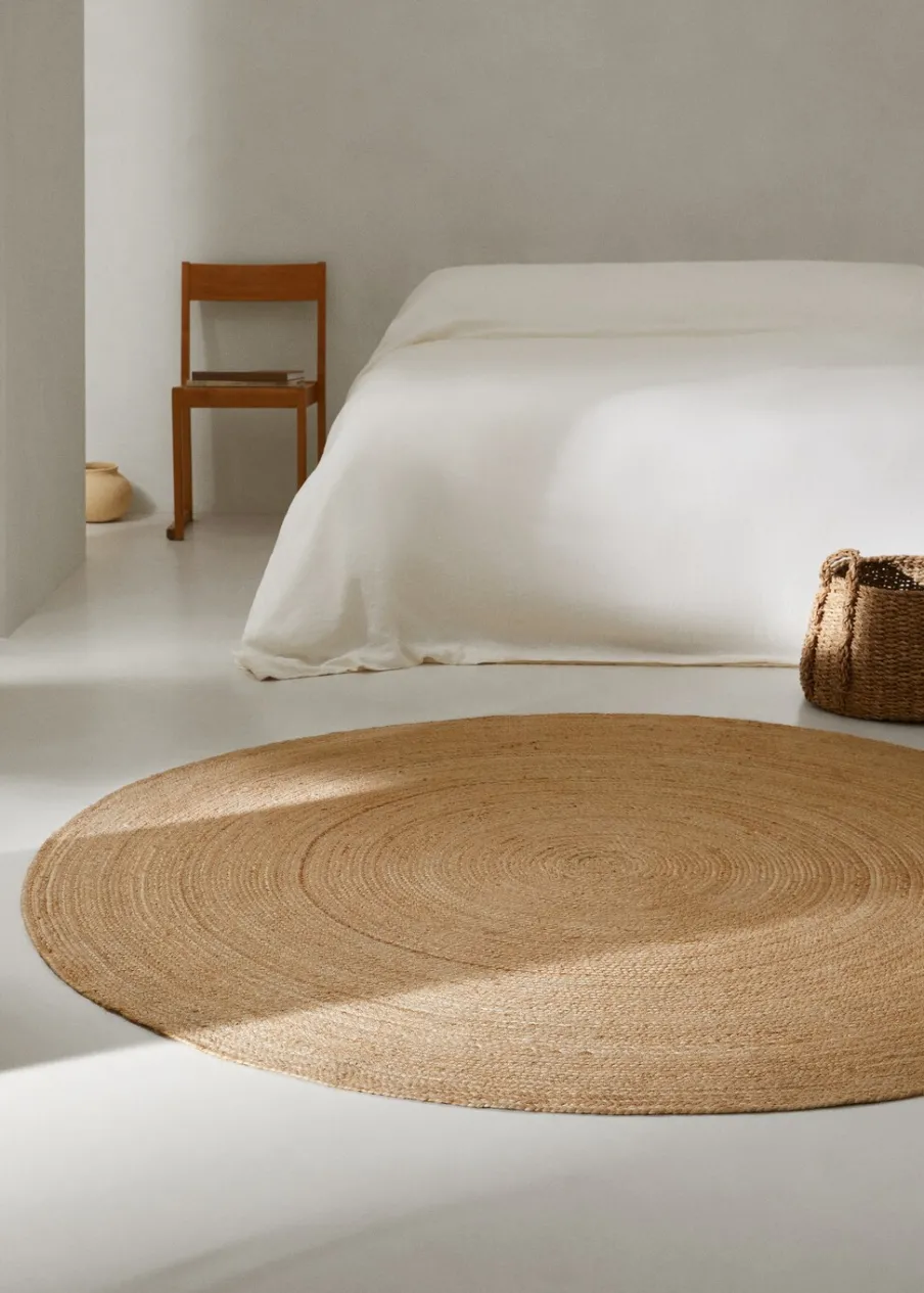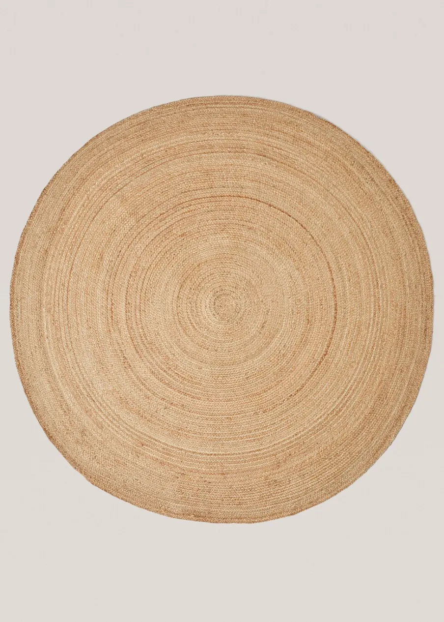 Tkanina z 100% juty. Średnica: 180 cm. Naturalne włókna. Śródziemnomorski styl. Wyrób ręczny. Różne kształty.