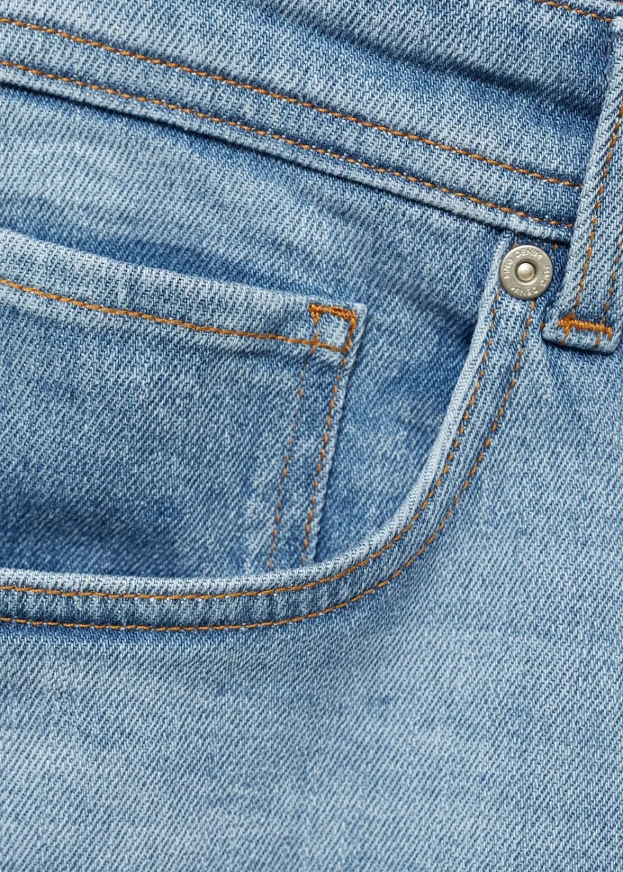 OpisSlim-fit. Tkanina bawełniana w dżinsowym stylu. Szlufki na pasek. Zapięcie na suwak i guzik. Dwie kieszenie boczn…