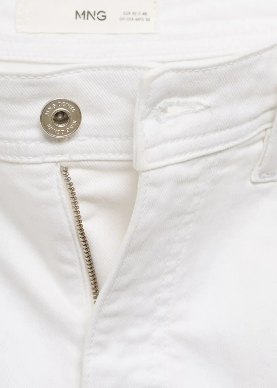 OpisSlim-fit. Tkanina bawełniana w dżinsowym stylu. Szlufki na pasek. Zapięcie na suwak i guzik. Dwie kieszenie boczn…