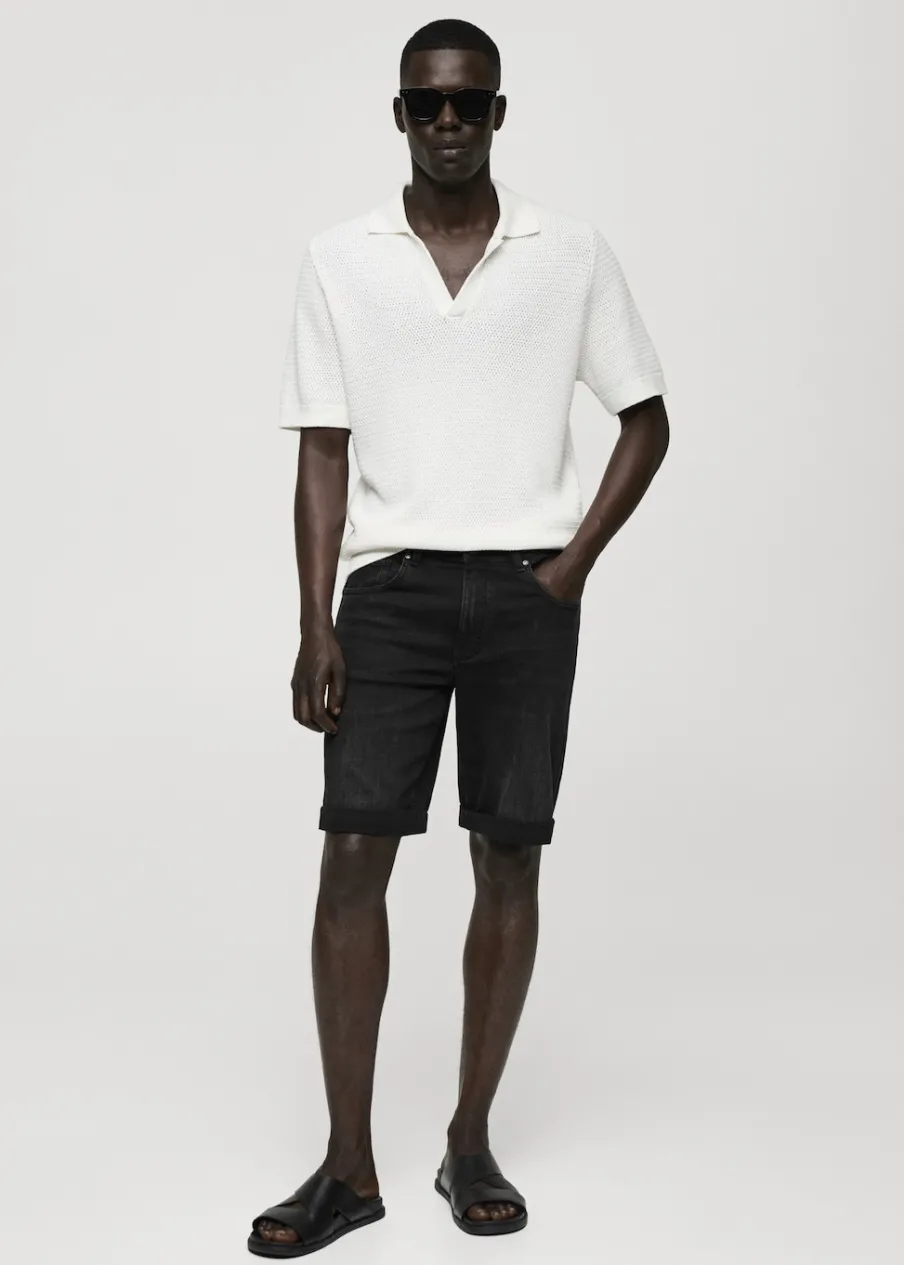 Slim-fit. Tkanina bawełniana w dżinsowym stylu. Szlufki na pasek. Zapięcie na suwak i guzik. Dwie kieszenie boczne. Kieszeń na bilon. Dwie kieszenie nakładane z tyłu. Wywinięte nogawki. Model ma 185 cm wzrostu i nosi rozmiar 42.